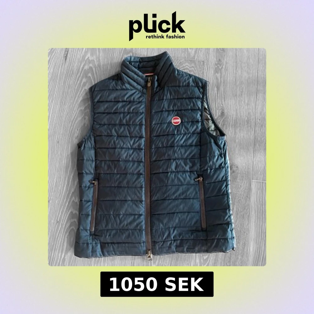 Snygg mörkblå dunväst från Colmar med dragkedja och två fickor framtill. Västen har en quiltad design och en liten logotyp på bröstet. Perfekt för kyligare dagar. Mått 53cm * 68cm