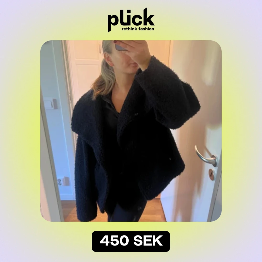 Marinblå teddy jacka från Gina tricot i storlek s.