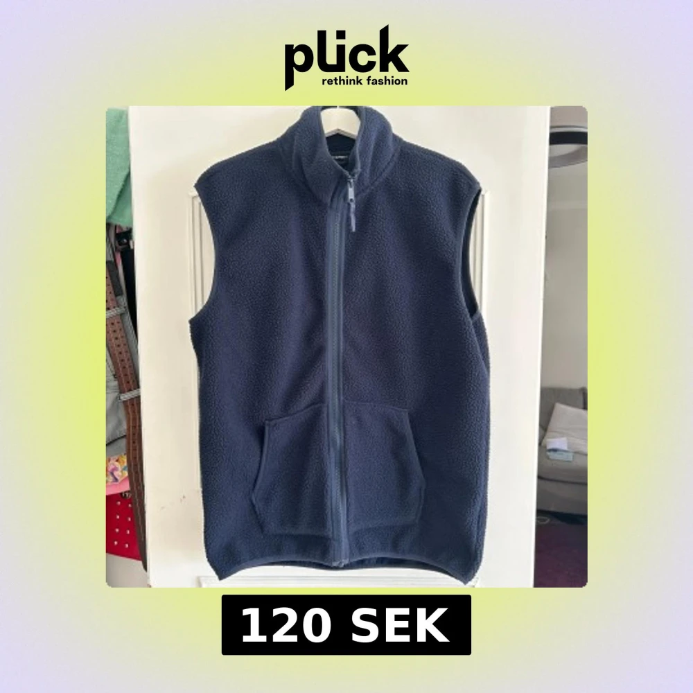 Mysig mörkblå fleeceväst från med hög krage och hel dragkedja framtill. Vesten är perfekt att slänga över en skjorta eller hoodie. Enkel och stilren design som funkar till många outfits. Modellen är 180 och 67kg