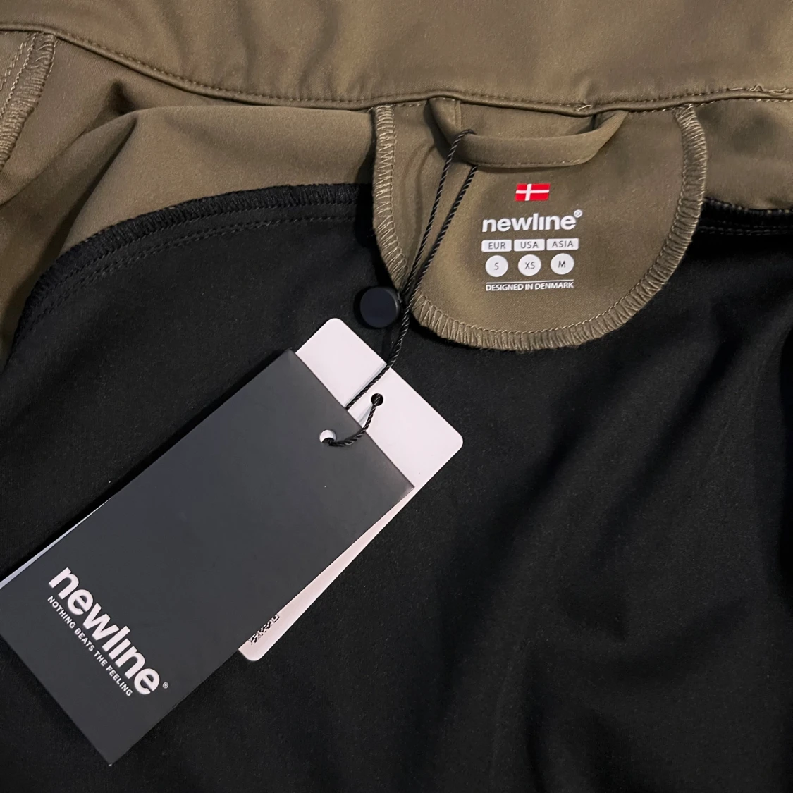 Sportig vindjacka från Newline i svart och olivgrönt med hel dragkedja, bröstficka med dragkedja och reflekterande detalj över bröst och rygg. Jackan har hög krage och är tillverkad i lätt syntetmaterial, perfekt för utomhusaktiviteter.