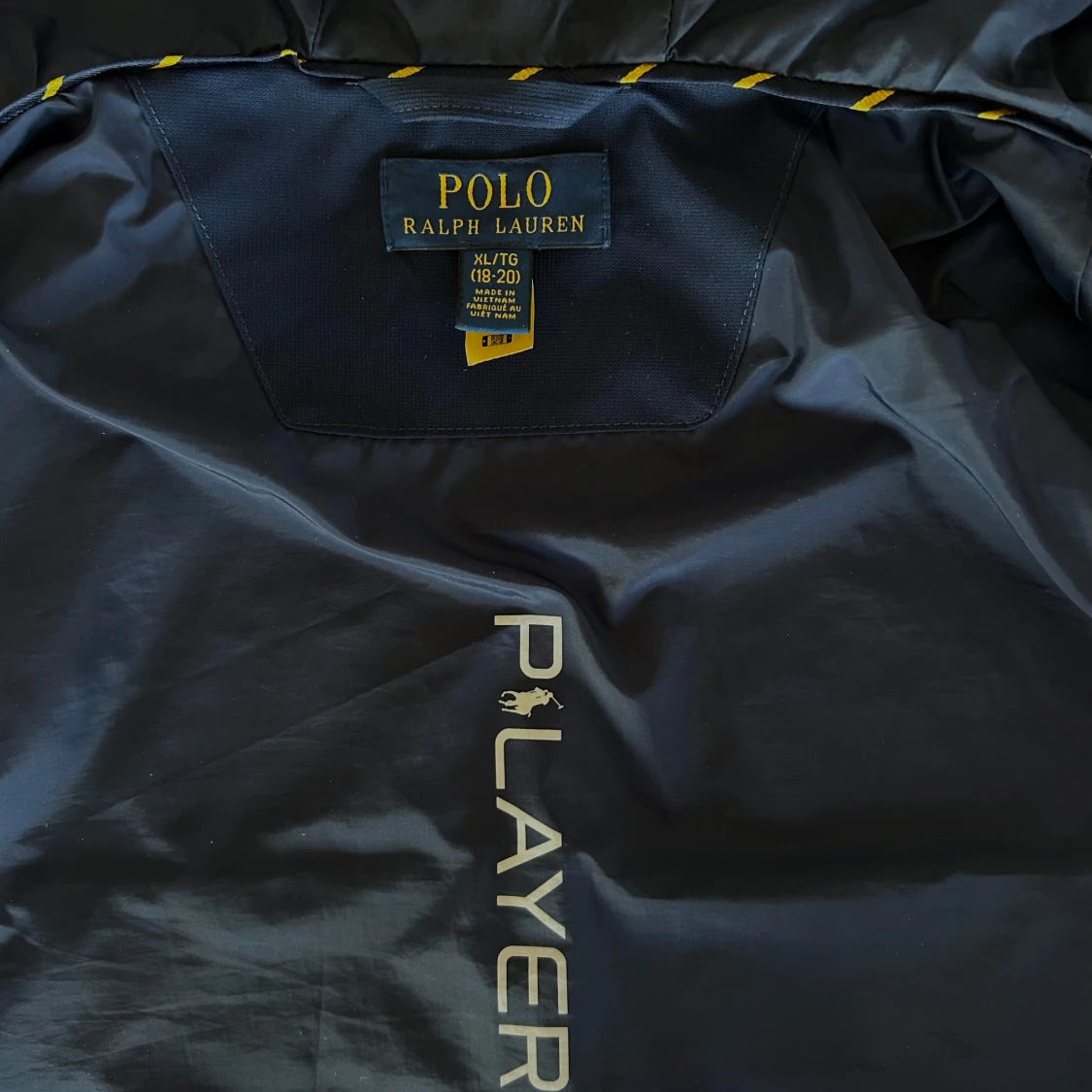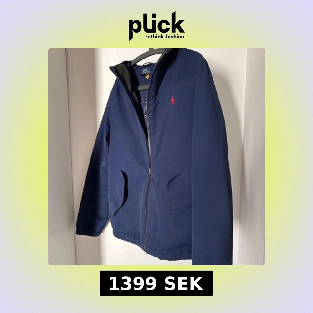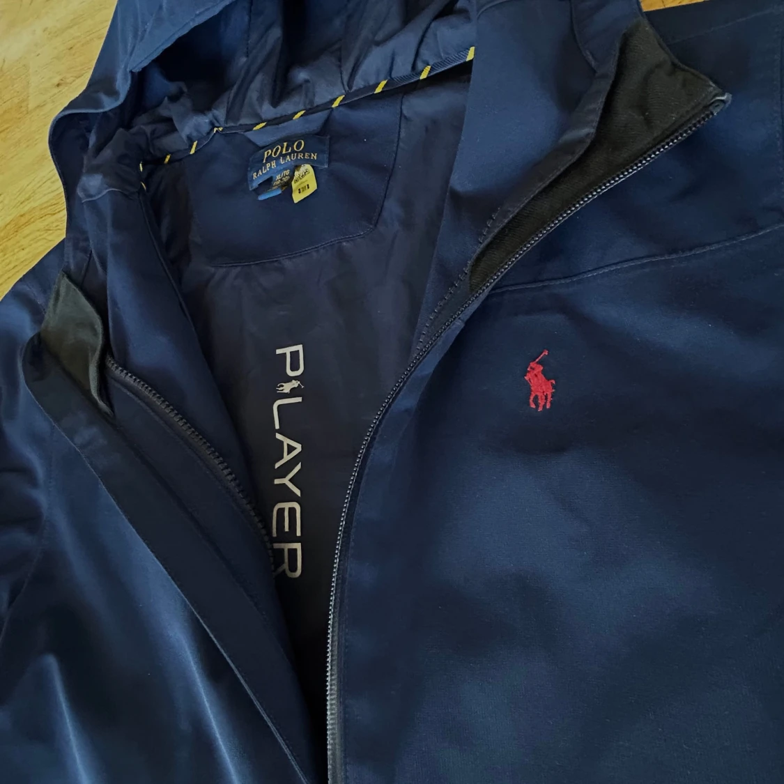 Snygg blå jacka från Polo Ralph Lauren med dragkedja och huva. Jackan har en röd broderad logotyp på bröstet och praktiska fickor med knappar. Perfekt för en stilren look. Utmärkt jacka under vår/sommar tiderna som väntas komma. Köpt inför sommaren 2024 men använd sparsamt och därför fortfarande som ny utan någon synlig skada av något slag. XL Barnstorlek, passar 165cm - ca 177cm. Jackan är vind och regntålig. Hör av er vid frågor!