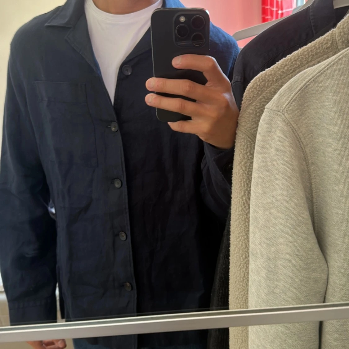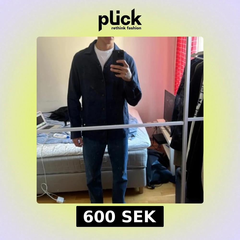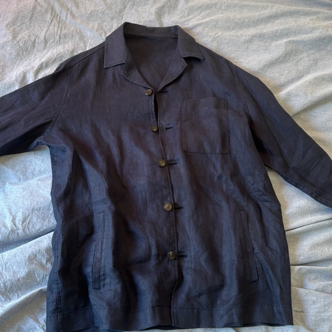 Säljer en stilren mörkblå overshirt med knappar framtill. Jackan har en klassisk krage och långa ärmar. Perfekt för lager-på-lager-stil. Linne overshirt från massimodutti helt oanvänd. Perfekt till sommar med linne byxor eller andra snygga outfits att kombinera!