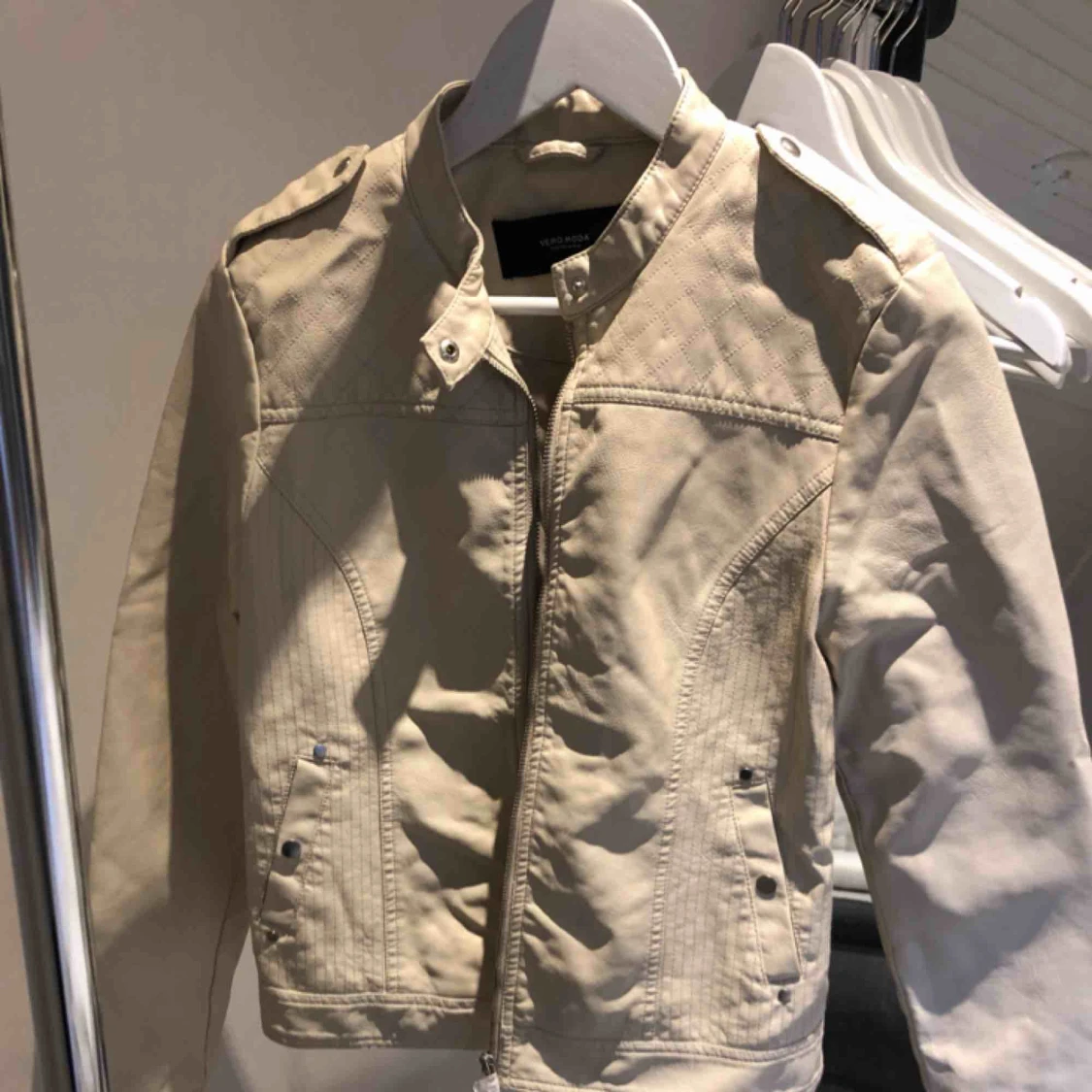 Supersnygg jacka för våren som aldrig använts då jag beställde fel storlek! Jackan är inköpt 2018 från Vero Moda och kostar i nypris 380kr. Storlek M. Designen heter VMAlice short faux leather jacket tall i färgen Oatmeal.