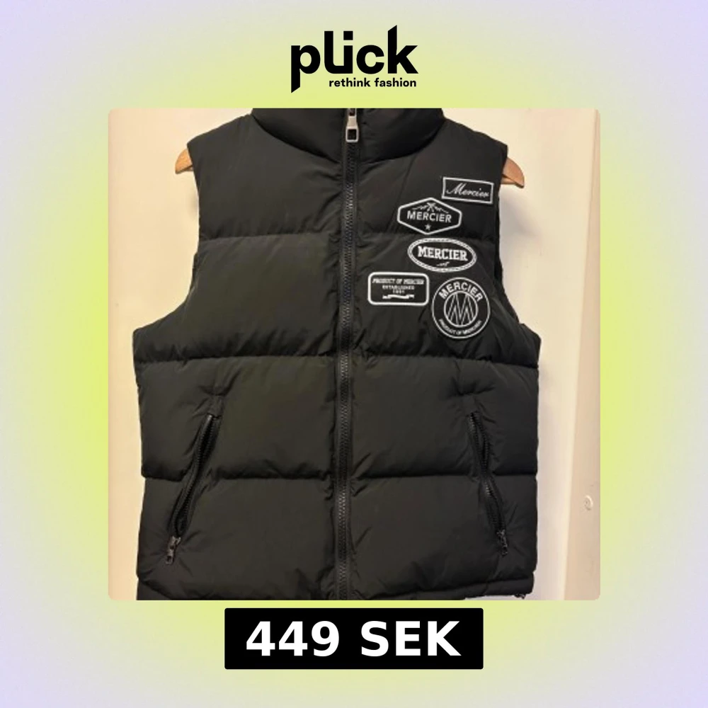 Svart dunväst från Mercier med flera broderade patches på bröstet. Västen har två dragkedjefickor framtill och stängs med dragkedja. Klassisk puffer-modell med hög krage och diskret logga på ryggen. Perfekt för lager-på-lager-stil.