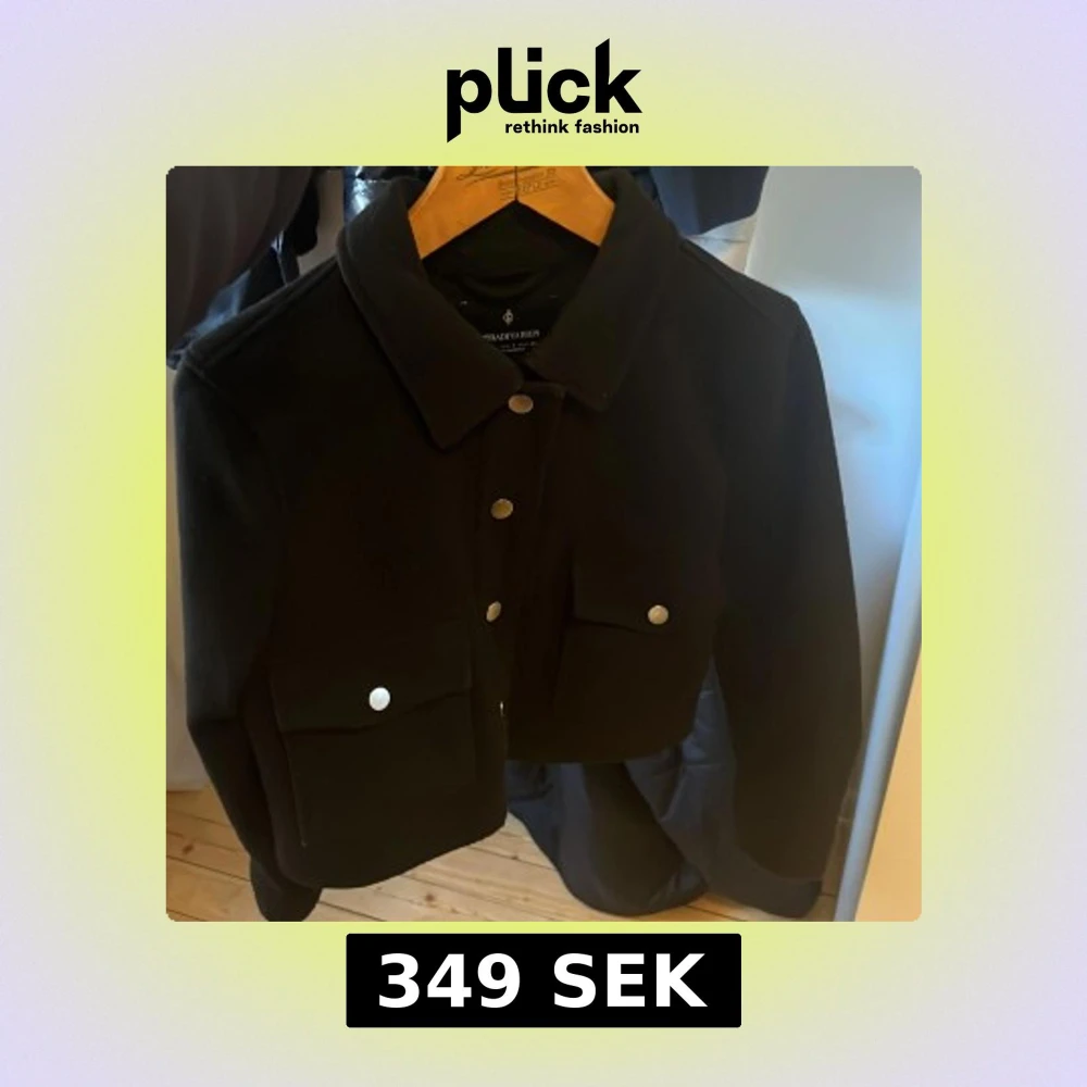 Snygg svart jacka från Stradivarius med knappar framtill. Jackan är använd men fortfarande bra skick och mjukt tyg.💕Perfekt för en stilren look.☺️