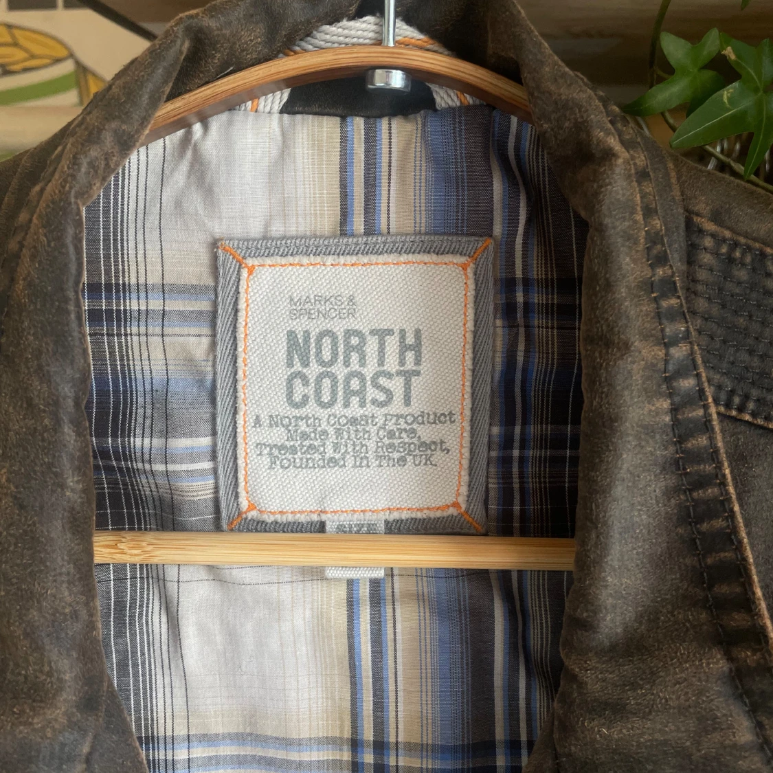Gyllenbrun mockaliknande jacka från North Coast. Bra som lagerjacka under höst. Storlek M, passar 180 ish bra.