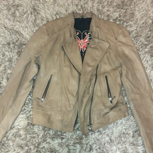 En jättefin skinnjacka i strl 38. Den är ifrån Molltan Sweden. Jackan är beige/ljusbrun. Perfekt som vårjacka! Om du har fler frågor är det bara att kontakta mig:) 💕