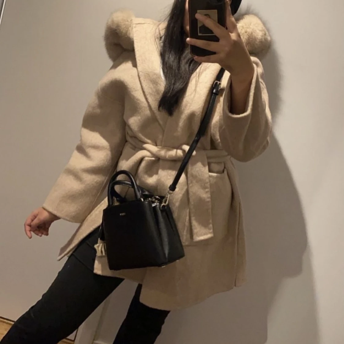 Säljer en pälskappa i färgen Beige som inte är använd, köptes för en månad sen och säljer den för att den it används, de är äkta päls och bra skick på den, skriv privat för fler bilder. (Lånad bild)
