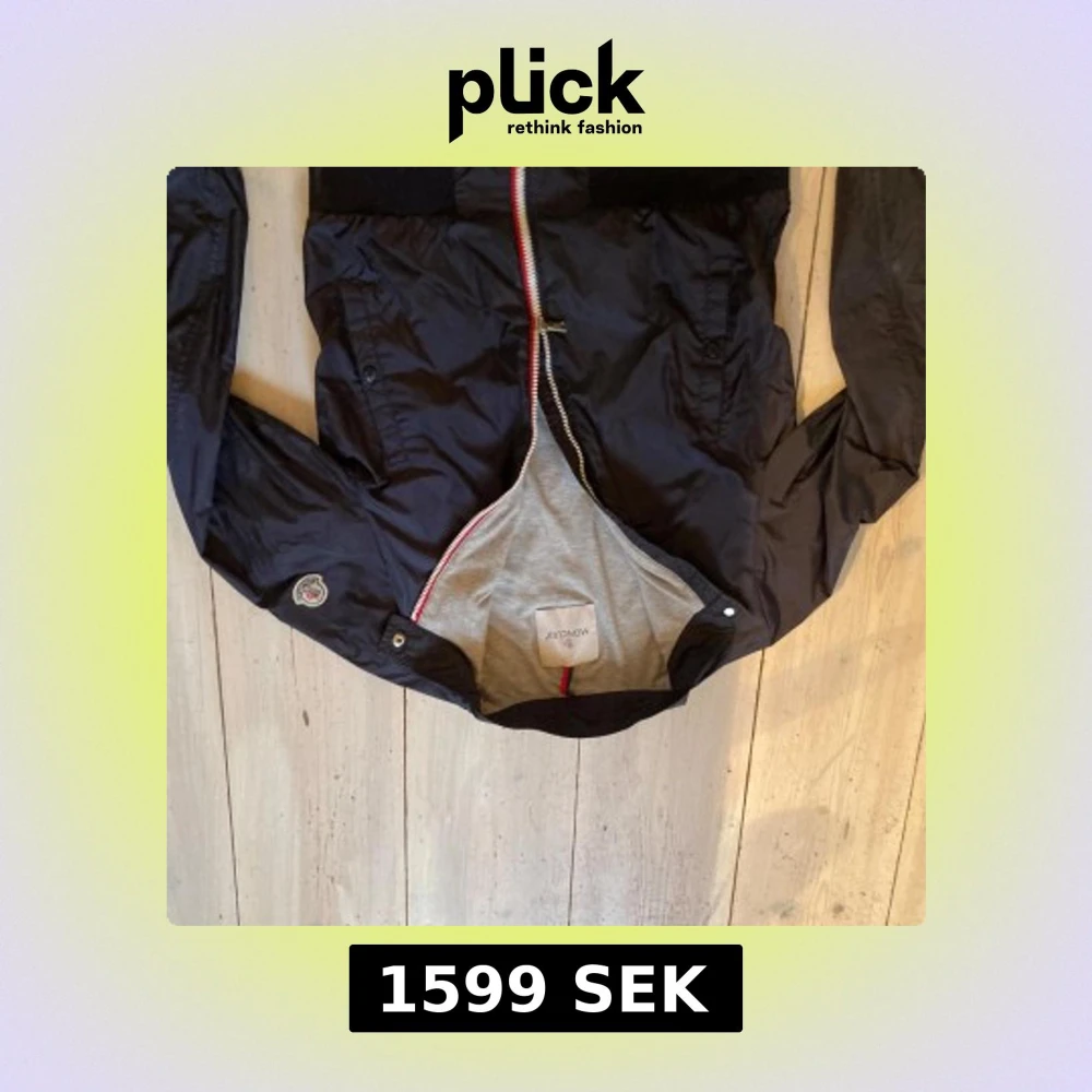 Säljer en svart vindjacka från Moncler med rödvit dragkedja och ståkrage. Jackan har långa ärmar, två fickor framtill och Moncler-logga på ena ärmen. Perfekt för dig som vill ha en stilren och sportig look. Jackan är i storlek 158 men sitter som typ en 152.Kan prutas vid snabb affär.