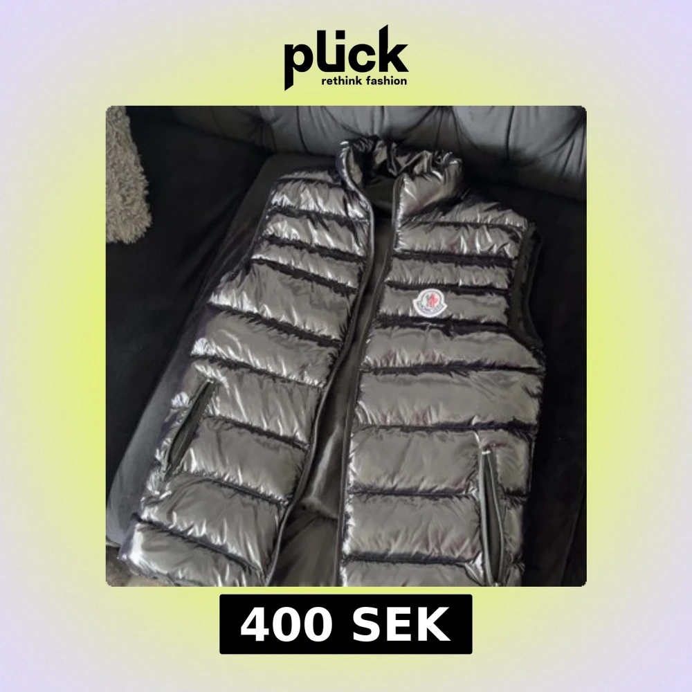Snygg svart dunväst från Moncler med glansig yta och dragkedja framtill. Västen har två fickor med dragkedjor och Moncler-logga på bröstet. Perfekt för kyliga dagar! EJ ÄKTA!!