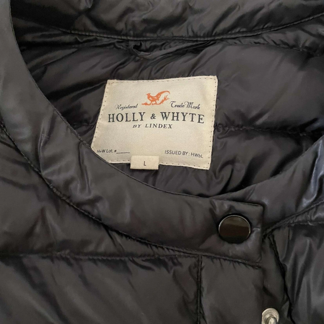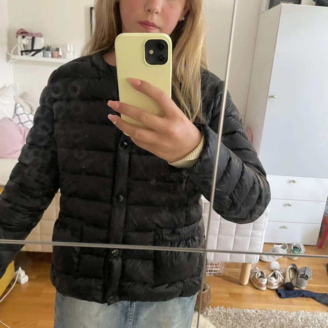 Säljer en svart dunjacka från Holly & Whyte by Lindex i storlek L men känns som en S/M. Jackan är quiltad med knäppning framtill och har två fickor. Perfekt för kyliga dagar och har en clean, enkel look som funkar till det mesta.