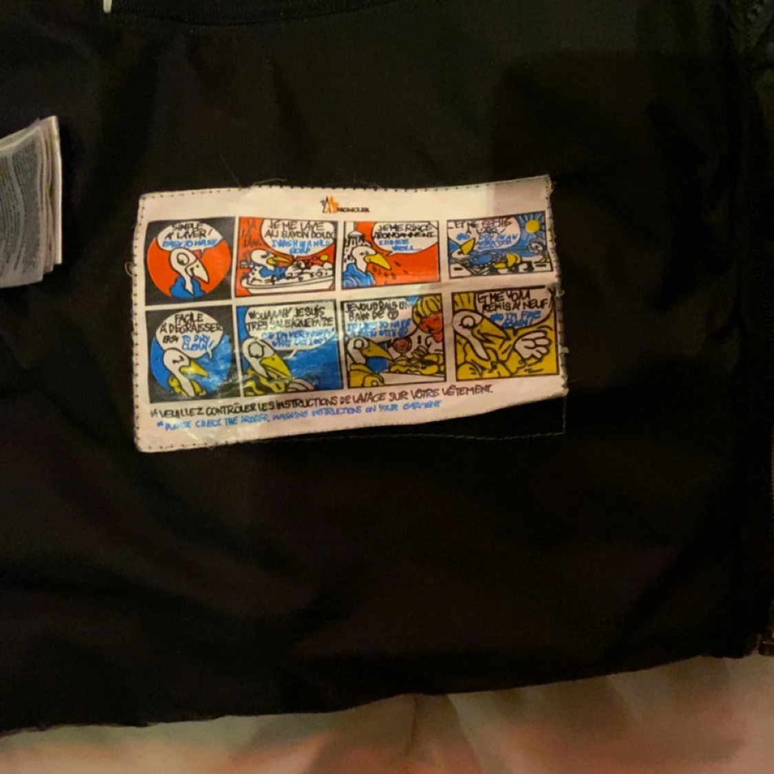 Snygg svart dunväst från Moncler med glansig finish och dragkedja framtill. Västen har två praktiska fickor med dragkedjor och Moncler-logga på bröstet. Perfekt för kyligare dagar. Men den har ett hål vid fickan så vid snabb affär så kan jag tänka mig att gå ner i pris