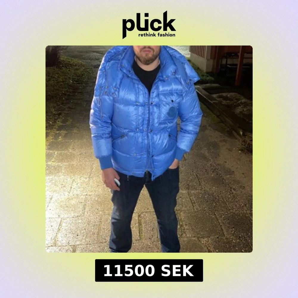 Säljer en blå jacka från Moncler med huva och dragkedja. Jackan har en glansig finish, ribbade muddar och två fickor med dragkedja framtill. Perfekt för kalla dagar och riktigt snygg streetstil. Storlek L. Ha med i åtanke att bilden som är tagen framifrån är jag och de regnande lätt den dagen så droppar som syns på jackan är från regnet.små fläckar på utav armarna men syns knappt. Vid köp så skickar jag noggrannare vidoes eller bilder på jackan så du själv kan se närmare på den.