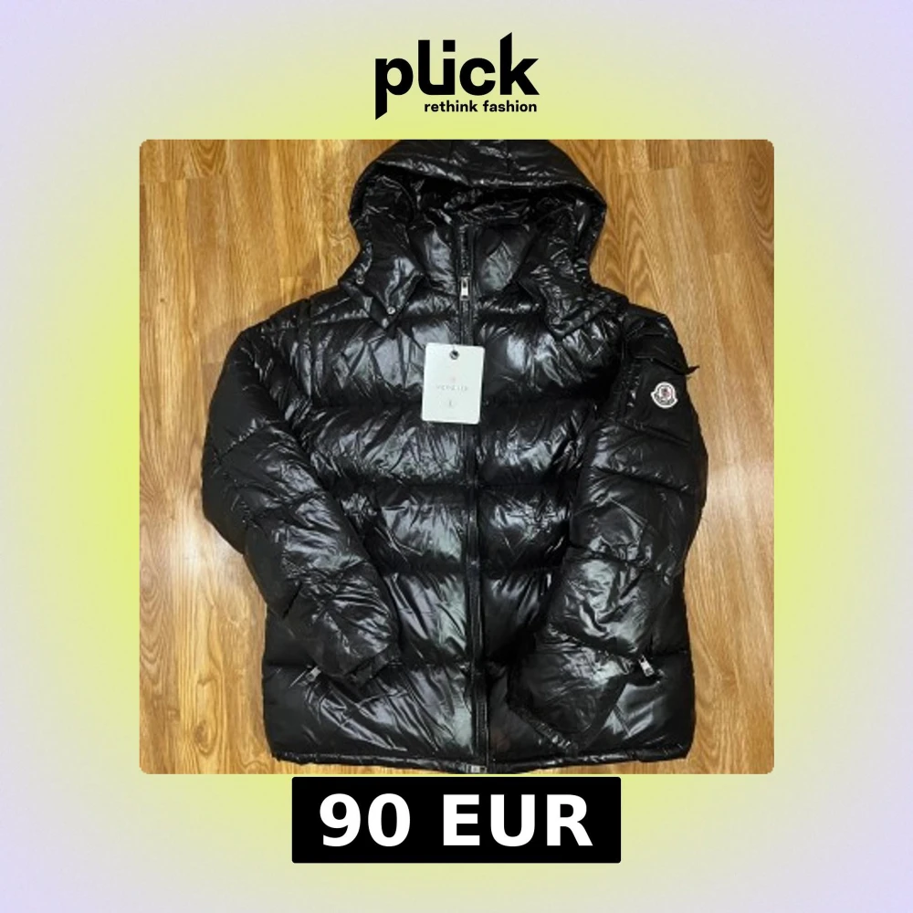 Säljer en svart pufferjacka från Moncler med huva och klassisk logga på ärmen. Jackan har glansig yta, dragkedja framtill och quiltad design som ger en cool look. Perfekt för kalla dagar och riktigt snygg till streetwear.