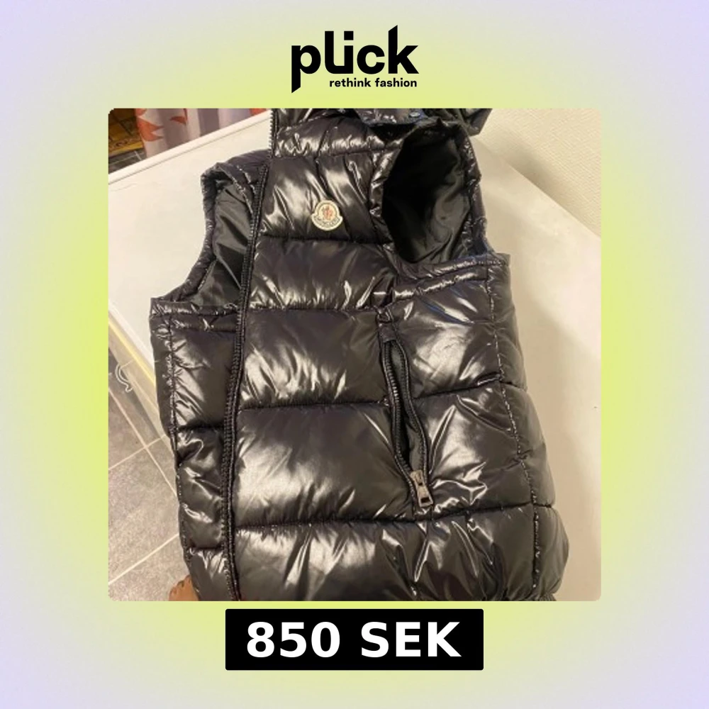 Snygg svart dunväst från Moncler med glansig finish och klassisk logga på bröstet. Västen har quiltad design, dragkedja framtill och praktisk ficka med dragkedja. Perfekt för lager-på-lager och streetstyle. Reserverad ….