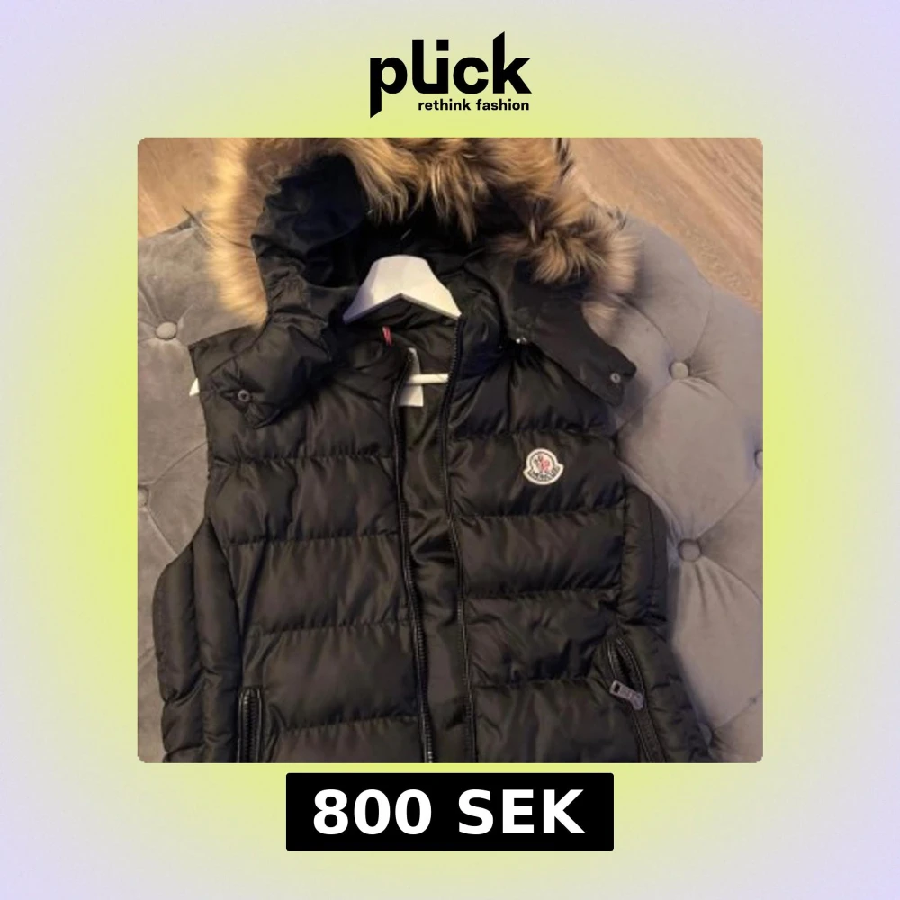 Svart dunväst från Moncler med avtagbar huva och lyxig pälskant. Västen har dragkedja framtill, två fickor med dragkedja och klassisk Moncler-logga på bröstet. Perfekt för kalla dagar när du vill hålla stilen. Storlek 3 passar S/M använd några gånger som ny!