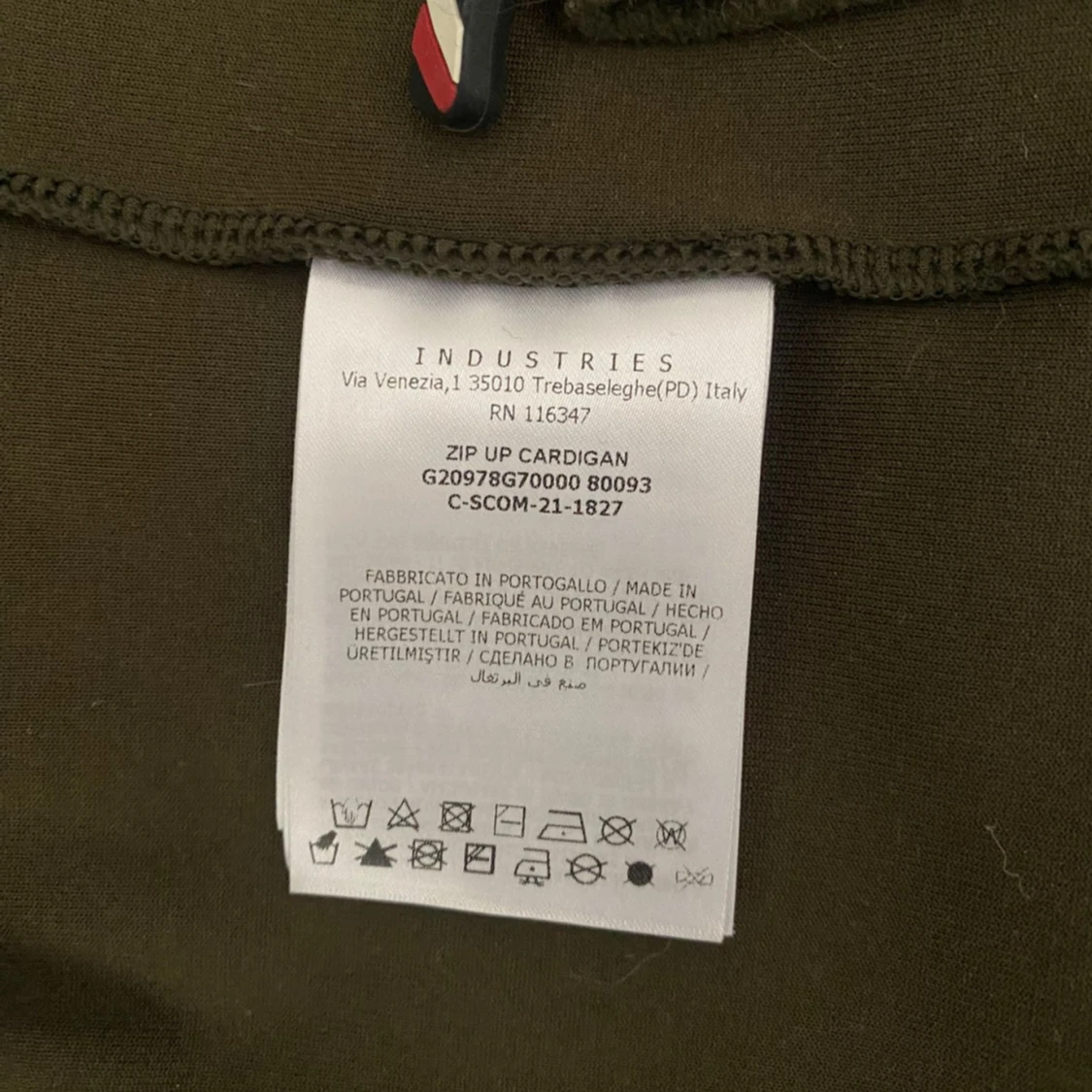 Snygg olivgrön cardigan jacka från Moncler med dragkedja framtill och broderad logga på bröstet. Jackan har hög krage med knappdetaljer och Monclers signaturband vid ärmslut. Perfekt för dig som vill ha en stilren och exklusiv look.