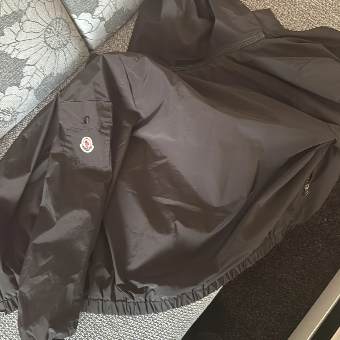 Säljer en svart dunjacka från Moncler i storlek M. Jackan har klassisk Moncler-logga på ärmen, dragkedja framtill och elastisk nederkant. Tillverkad i lätt och glansig polyester med certifierat dunfoder. Perfekt för dig som vill ha en stilren och exklusiv look.