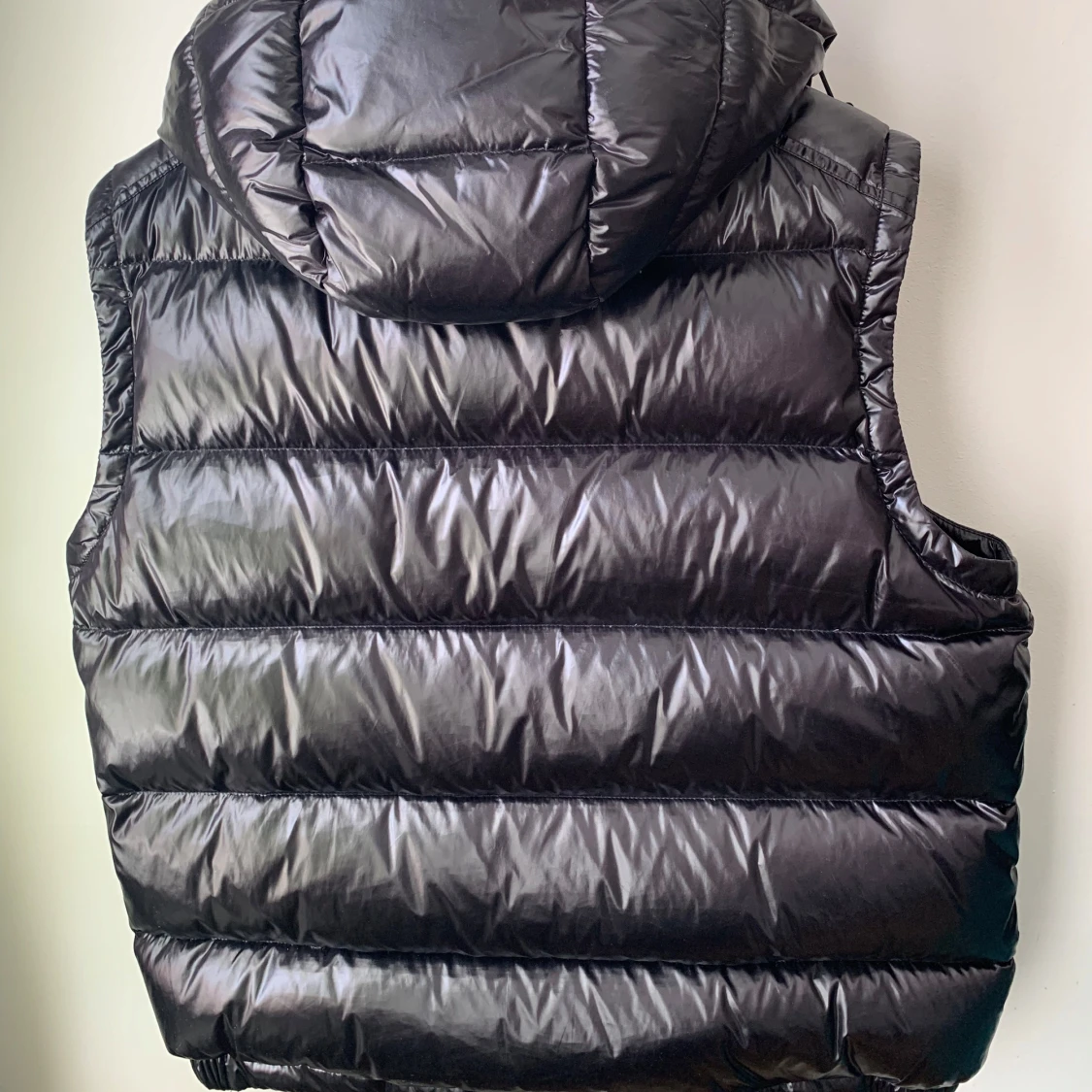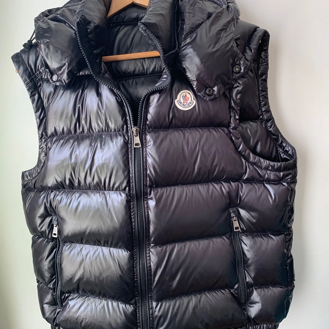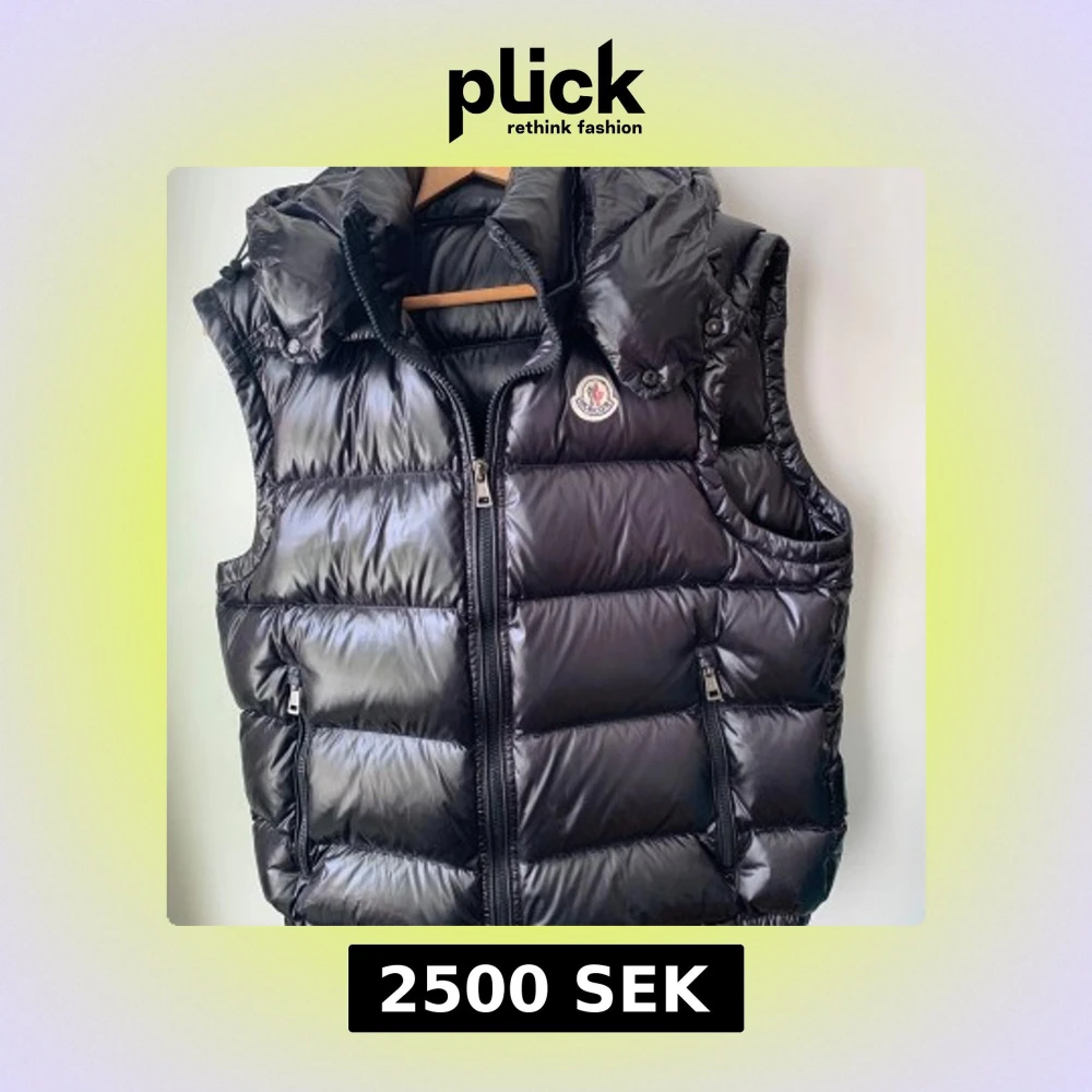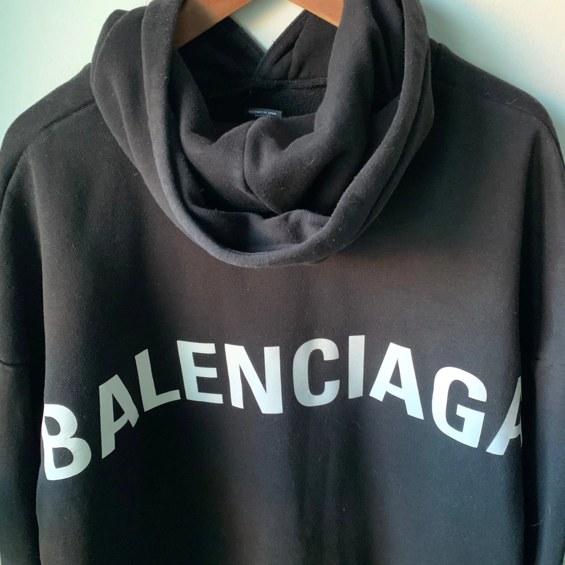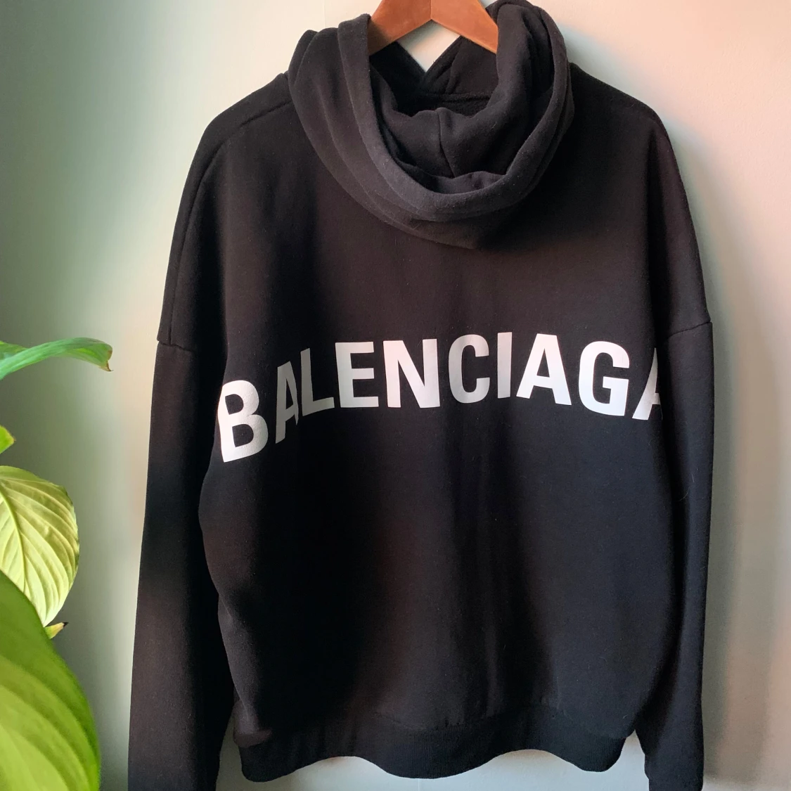 Svart Moncler dun väst med luva, jättefint skick, inga skador, storlek två dvs medium . Pris 2500k. Svart Balenciaga Hoodie, storlek L oversized. Bra skick. 1700 kr.