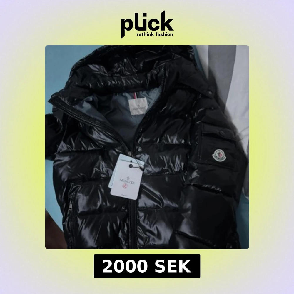 Snygg svart pufferjacka från Moncler med glansig finish och dragkedja framtill. Jackan har en huva och två praktiska fickor med dragkedja. Perfekt för kyliga dagar. Nfc och allt funkar