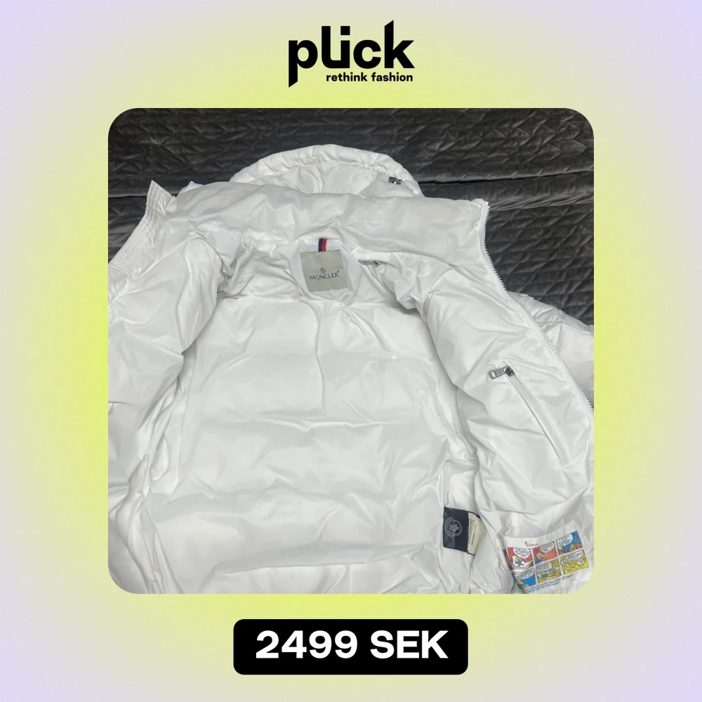 Säljer en snygg vit dunjacka från Moncler i mycket bra skick. Jackan har en dragkedja framtill och en mysig huva för extra värme. Perfekt för kalla vinterdagar! Den är quiltad och har en stilren design som passar till det mesta. 👍