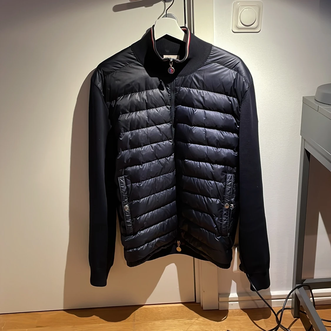 Riktigt snygg Moncler Jacka. Storlek i jackan är xl men jag som M/L kan ha på den utan problem. Innanför jackan så är det ett litet jack men det syns inte på något sätt när man har på sig den. Nypris är 7500kr. Pris kan diskuteras.