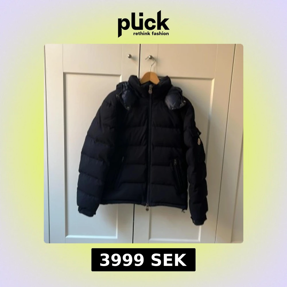 Säljer en svart pufferjacka från Moncler med huva och dragkedja framtill. Jackan har Moncler-logga på ärmen, snörning vid huvan och praktiska fickor med dragkedja. Perfekt för kalla dagar när du vill hålla stilen och värmen.