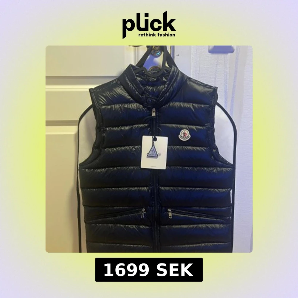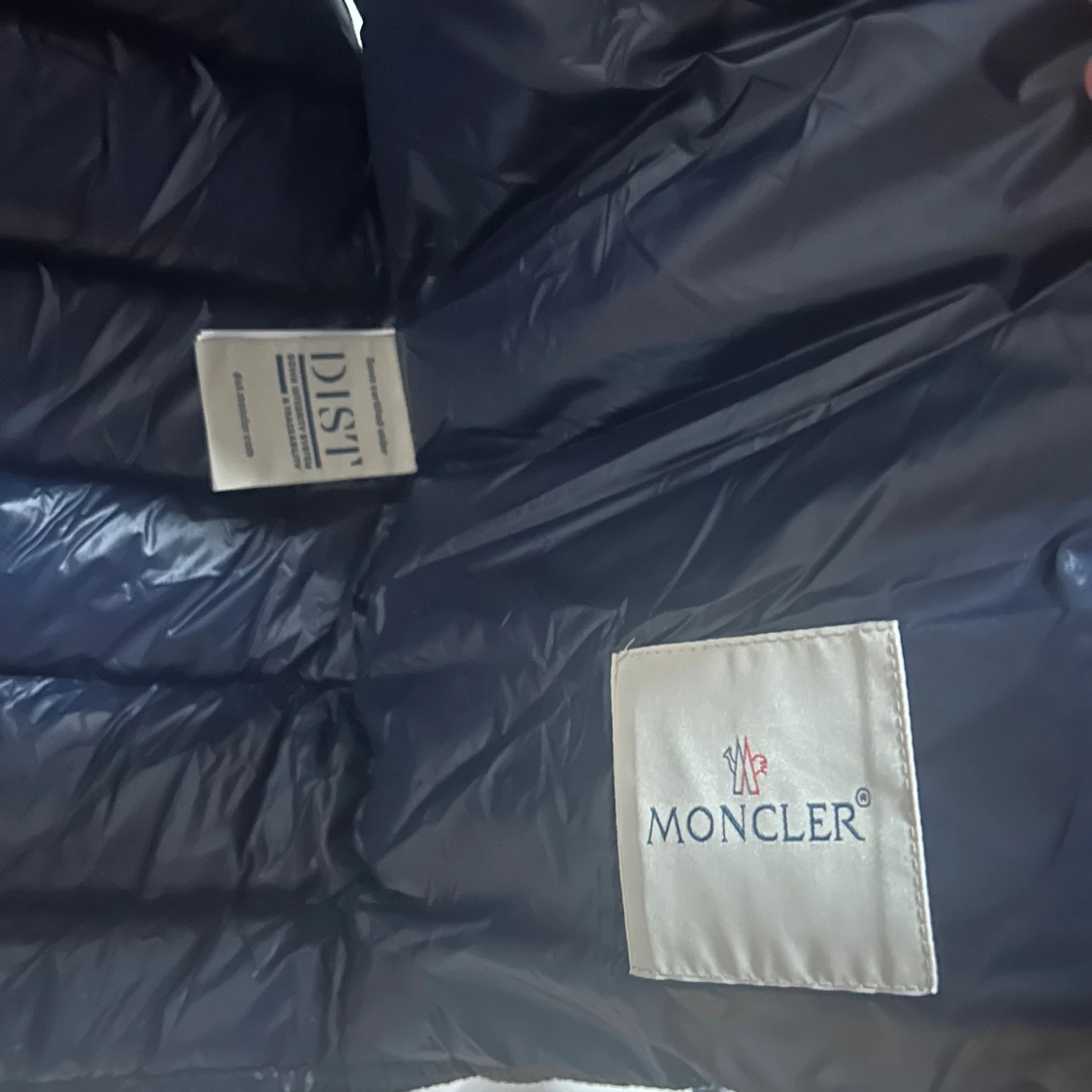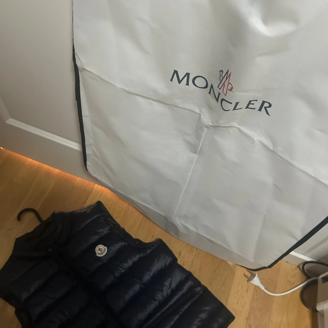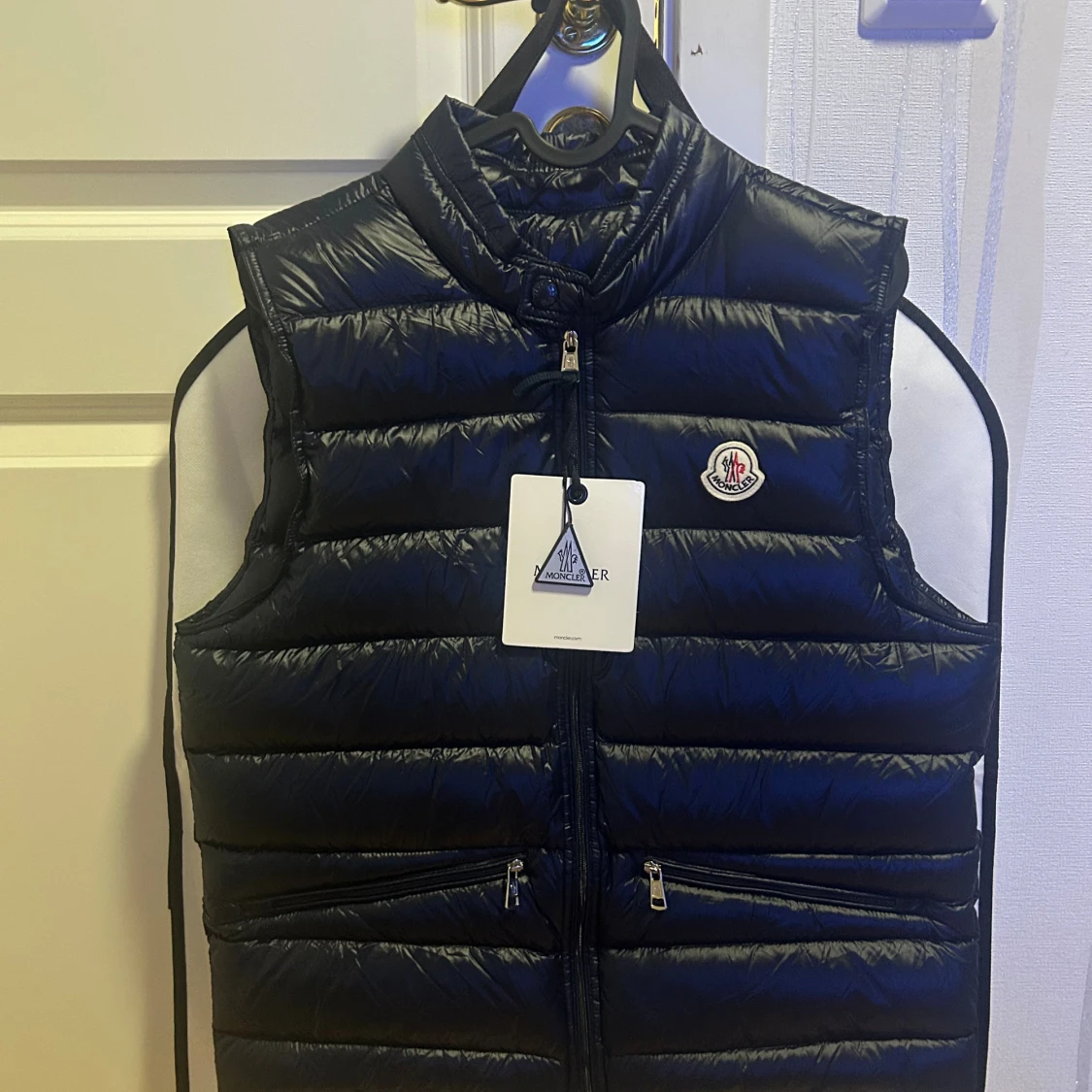 Snygg mörkblå dunväst från Moncler med quiltad design och klassisk logotyp på bröstet. Västen har dragkedja framtill, två praktiska fickor med dragkedja och hög krage. Perfekt för lager-på-lager och stilrena outfits.