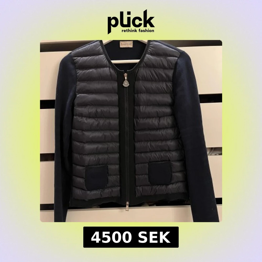 Säljer nu min superfina Moncler cardigan i marinblå, storlek S. Sparsamt använd men finns tecken på användning, tex vid lappen i nacken. QR kod finns för att visa äktheten, men har tyvärr inget kvitto eller så. SKRIV TILL MIG INNAN KÖP!🤎