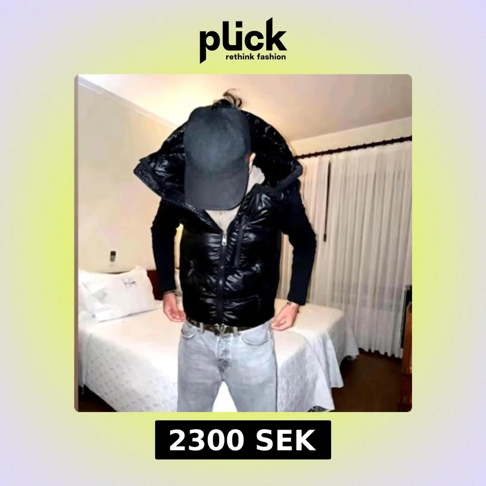 Svart pufferjacka från Moncler med glansig finish och stor huva. Jackan har dragkedja framtill, långärmade svarta ärmar i mjukt material och Moncler-logga på vänster arm. Perfekt för dig som gillar streetwear och vill ha en jacka som sticker ut.