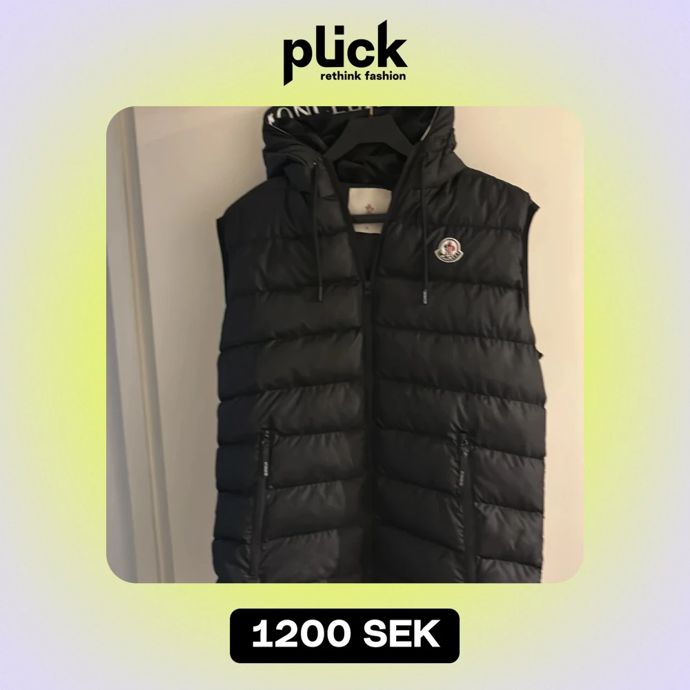 Moncler väst. Är helt ny och inte använd. 10/10 skick, inga skador eller hål. Är storlek L men passar också M. Har ni frågor är det bara att fråga.