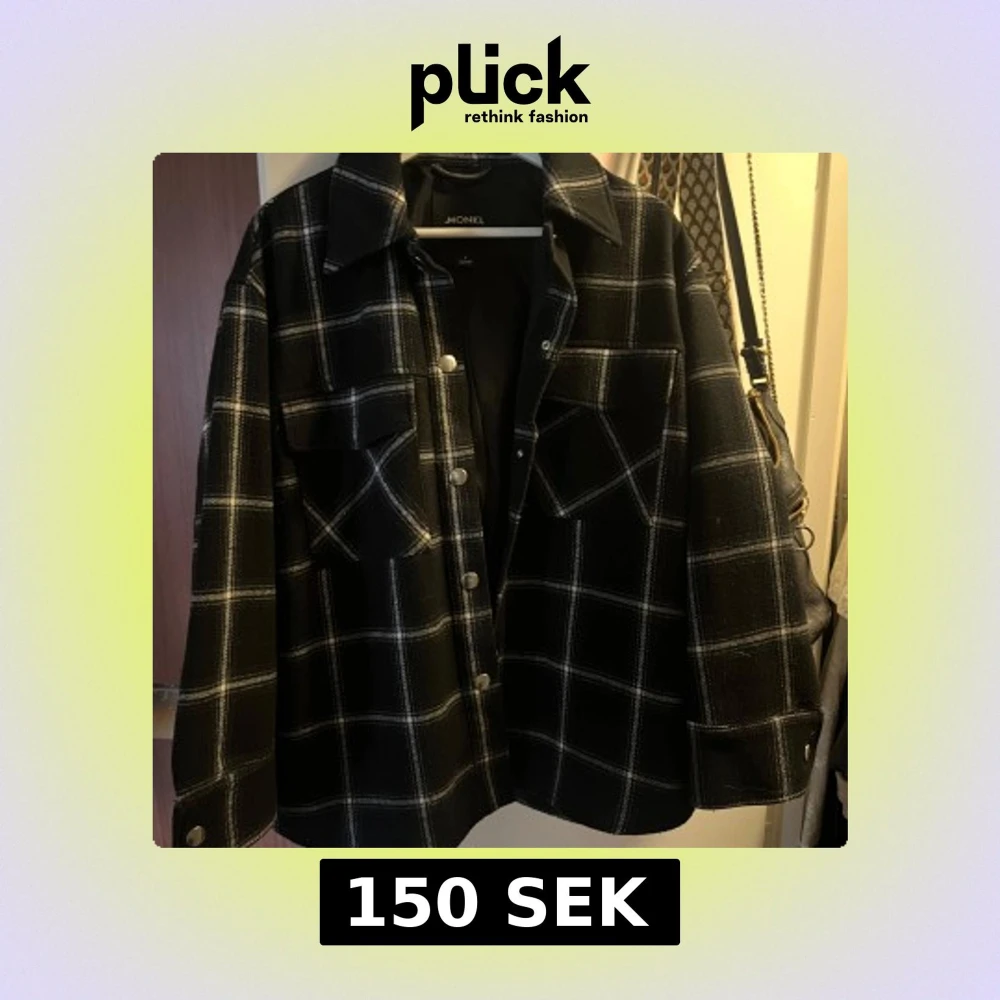 Snygg svart och vit rutig jacka från Monki med knappar framtill. Jackan har en klassisk krage och två bröstfickor. Perfekt för en stilren look.