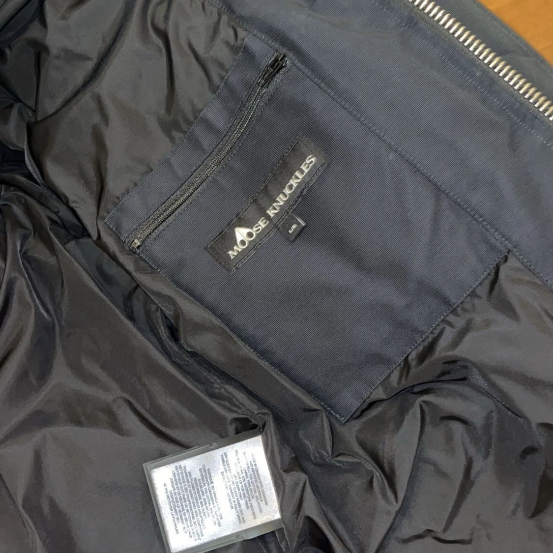 Säljer en svart dunjacka från Moose Knuckles med fluffig ljus päls på huvan och snygga detaljer på ärmen. Jackan har dragkedja, quiltad design och innerficka med dragkedja. Perfekt för kalla dagar och riktigt stilren look.