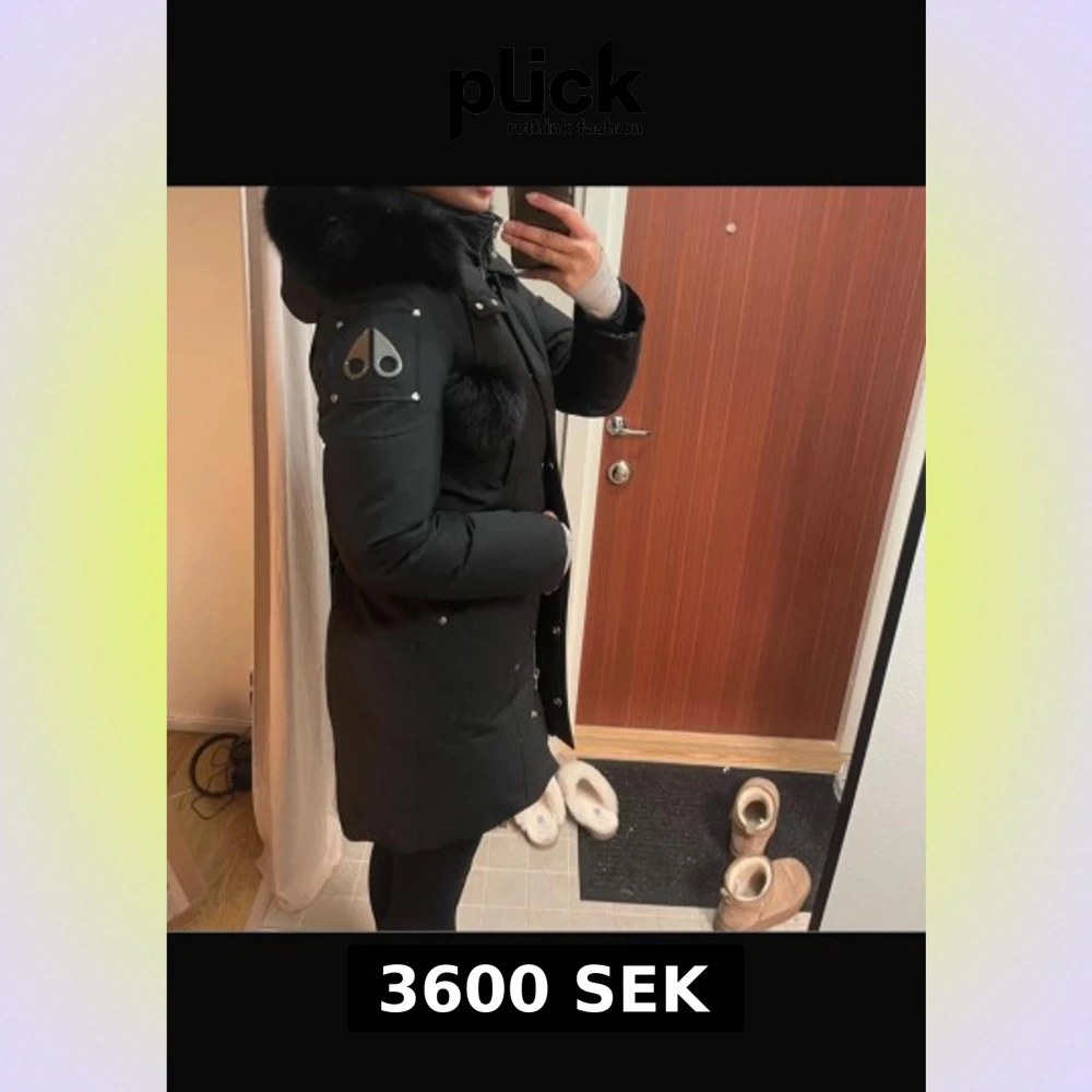 Säljer en svart dunjacka från Moose Knuckles med fluffig svart päls på huvan och coola metalldetaljer. Jackan har lång ärm, dragkedja och knappar framtill samt logga på ärmen. Perfekt för kalla dagar och har en riktigt snygg streetstil.