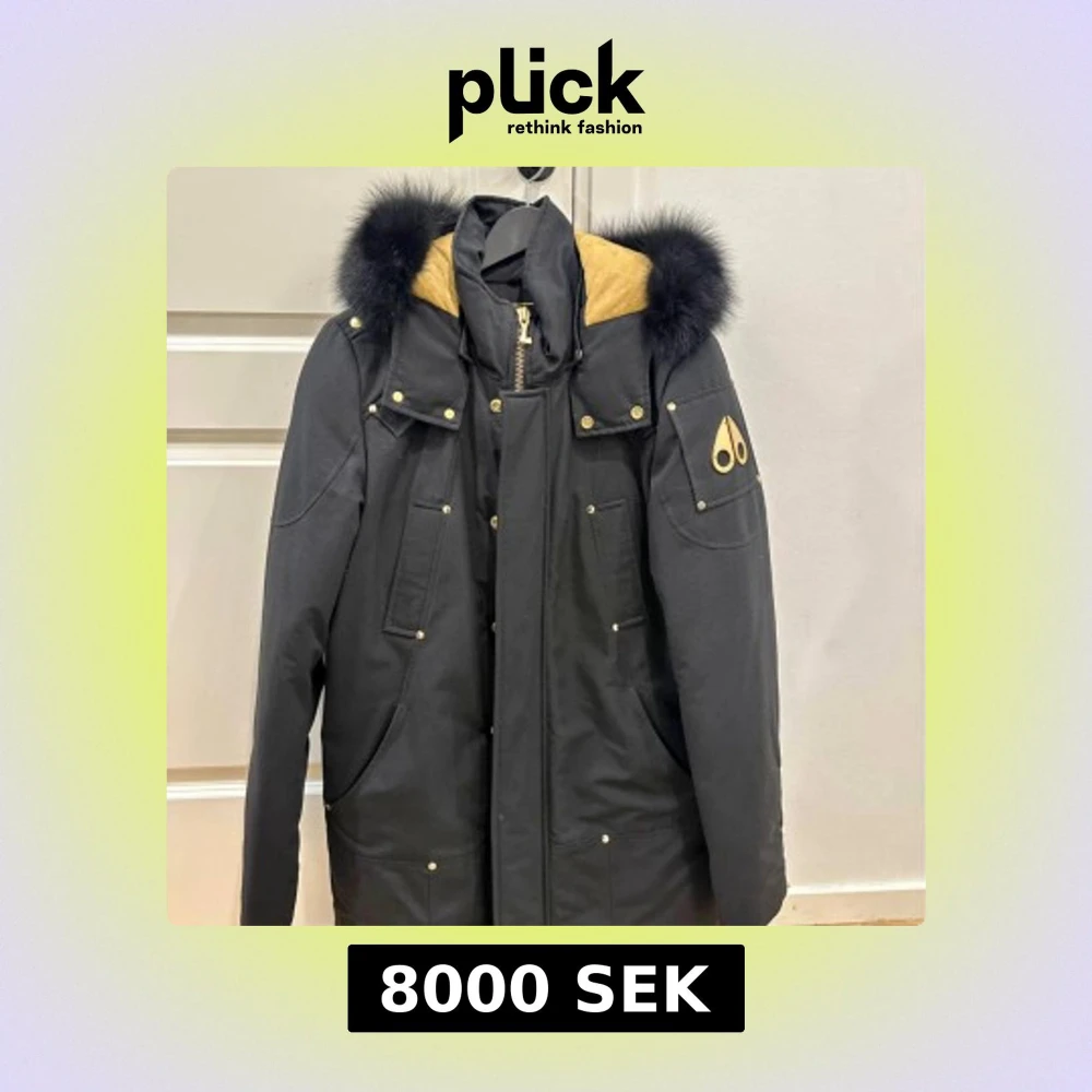 Svart parkajacka från Moose Knuckles med guldfärgade detaljer och dragkedja. Jackan har en stor huva med svart päls och flera fickor framtill. Insidan har ett broderat motiv med hockeyspelare och älg. Perfekt för kalla dagar och riktigt snygg stil. Använd 2 tillfälle förra vintern inprincip helt ny!