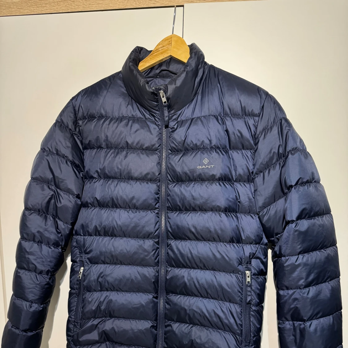 Snygg mörkblå dunjacka från Gant med quiltad design och dragkedja framtill. Jackan har hög krage, . Perfekt för kyliga dagar och enkel att matcha med det mesta. Köpte från Boozt för 2900.