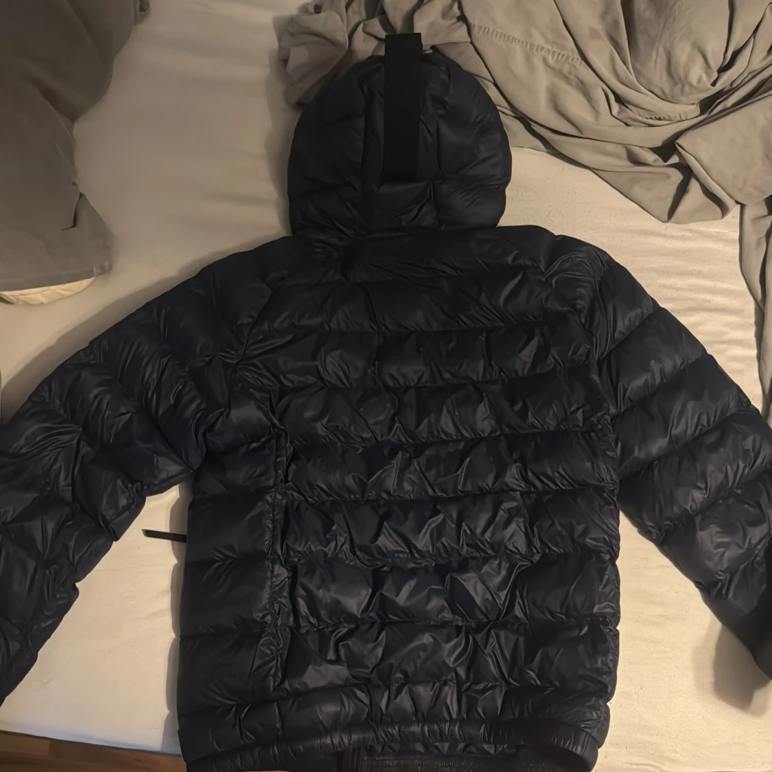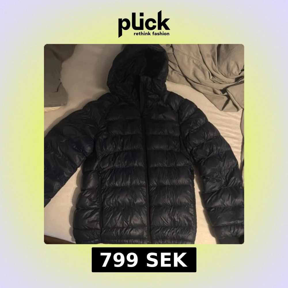 Säljer en snygg mörkblå dunjacka från Peak Performance. Jackan har en huva och dragkedja framtill, perfekt för kyliga dagar. Den är vadderad och ger bra värmeisolering.
