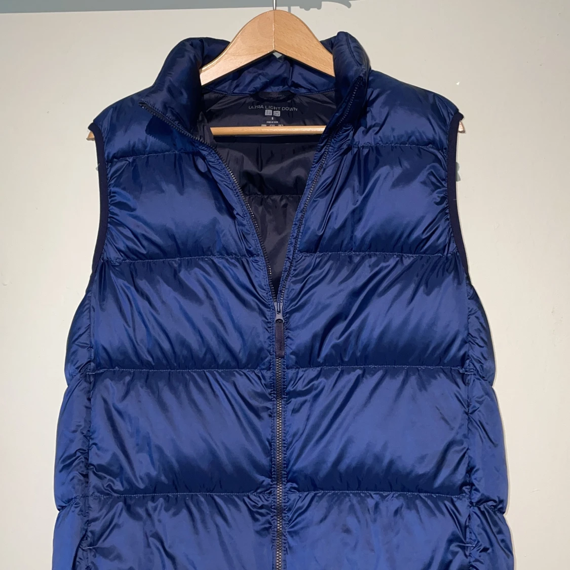 Säljer just nu en mörkblå dunväst från Uniqlo i storlek S. Västen är ultralätt och är i mycket bra skick. Perfekt för kyliga dagar när du vill hålla värmen utan att känna dig tung. Pris 175, nypris 450