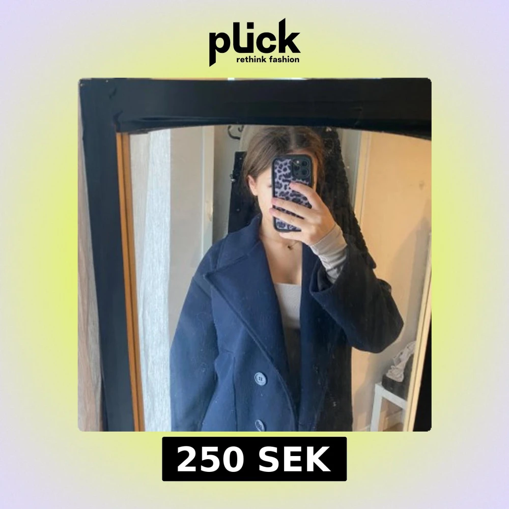 Snygg mörkblå kappa med klassisk krage och dubbelknäppning från Design by Si. Jackan har en loose passform och är långärmad, perfekt för kyliga dagar. Materialet känns som ullblandning och insidan är fodrad med svart tyg. Stilren och enkel att matcha.
