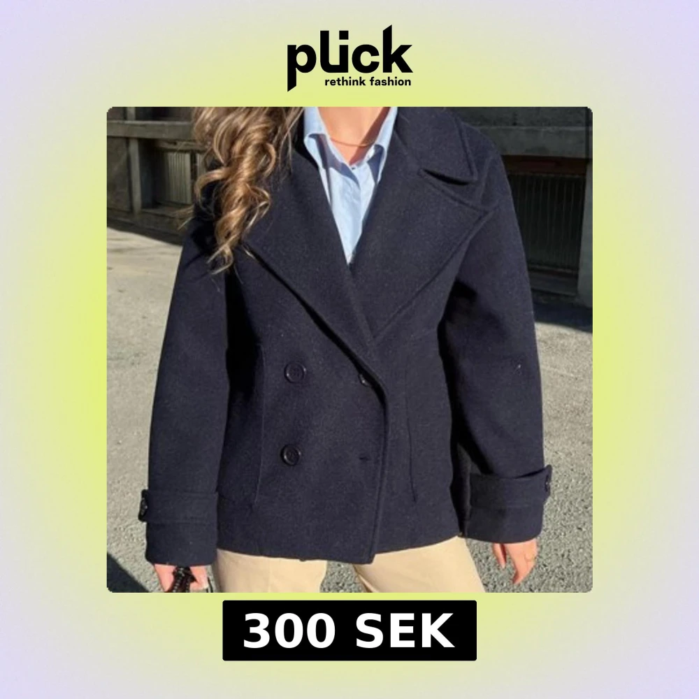 Jätte fin kappa i mörkblå från design by si, perfekt till höst och vintern!😍storlek XS/S