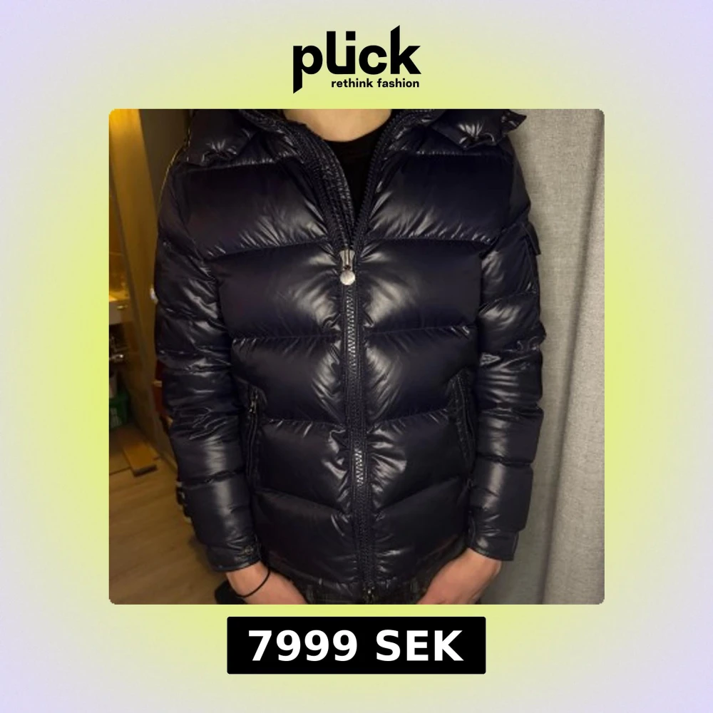 Tja! Säljer en snygg mörkblå Maya från Moncler. Jackan har en glansig finish och är utrustad med en dragkedja framtill. Otroligt fint skick ingen defekt eller liknande! Den har långa ärmar och en huva för extra värme. Perfekt för kyliga dagar! Givetvis äkta! Vid fundering är den endast att höra av sig!