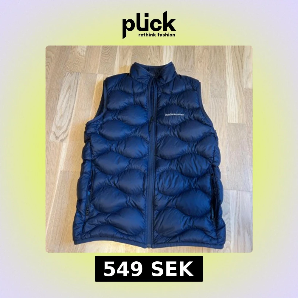 Säljer en snygg blå dunväst från Peak Performance. Västen har en dragkedja framtill och är quiltad för extra värme. Perfekt för kyligare dagar. Knappt använd, skick 9/10. Inga defekter. Pris diskuteras.