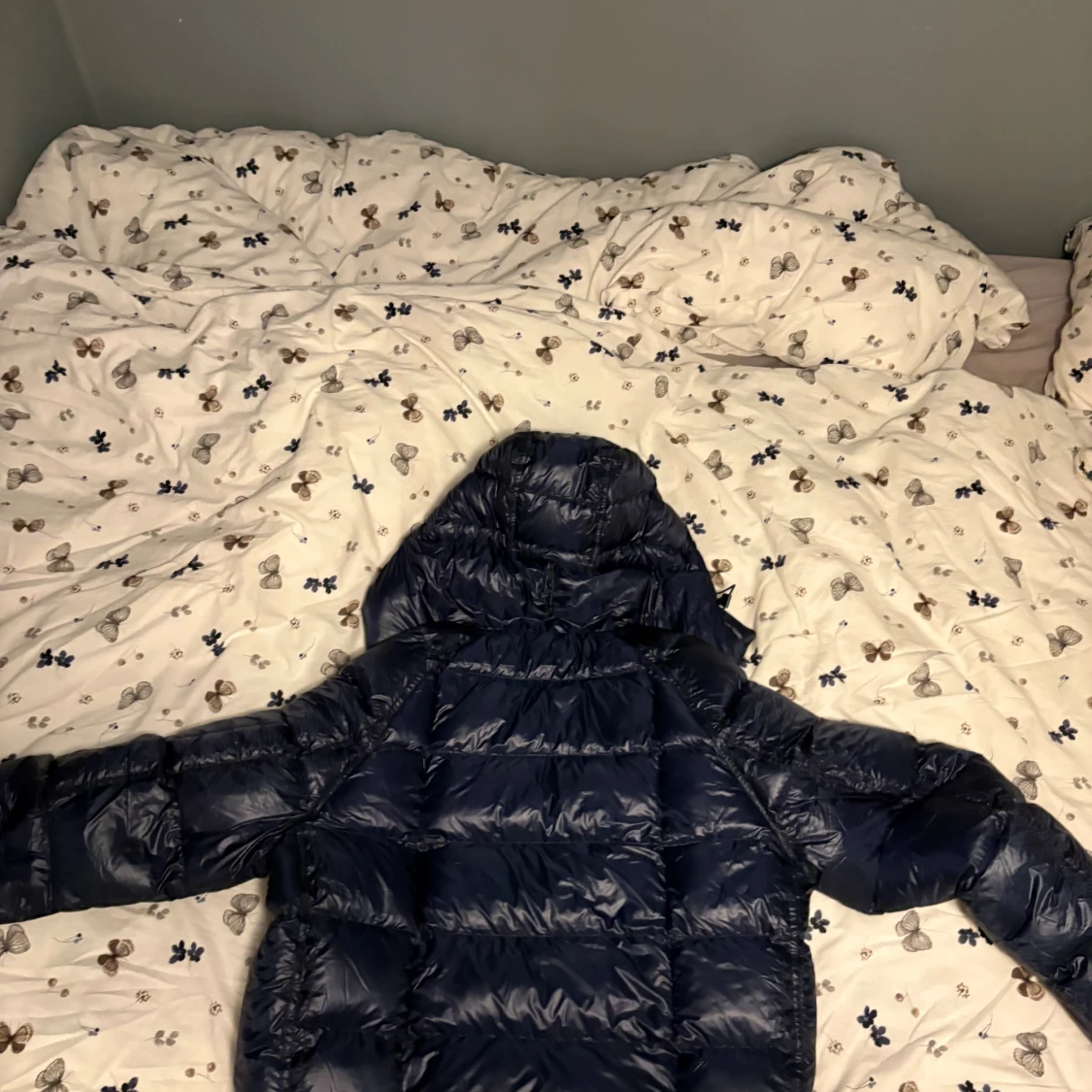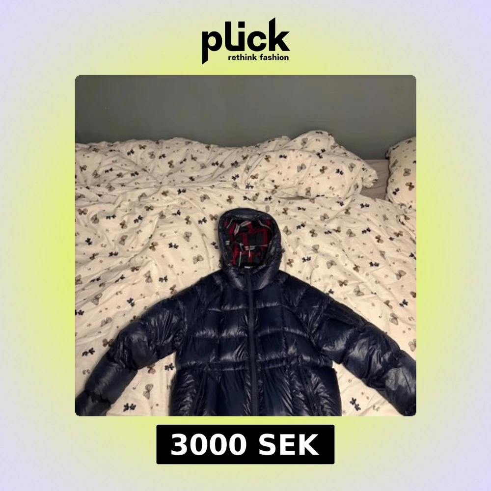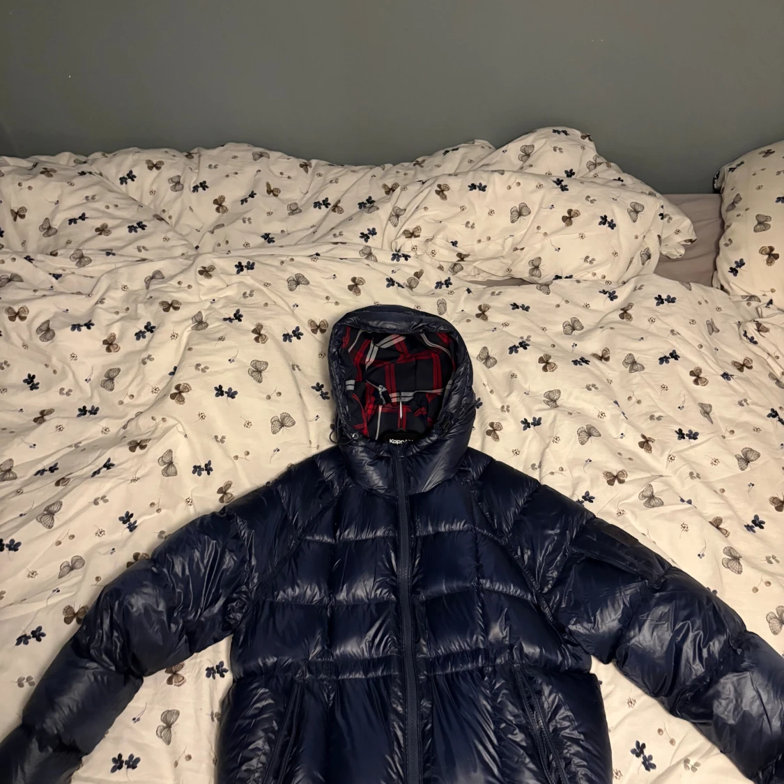 Snygg mörkblå pufferjacka från Aumile med huva och dragkedja. Jackan har ett rutigt innerfoder i blått, rött och vitt som ger en schysst kontrast. Perfekt för kalla dagar när du vill hålla stilen och värmen. Slut såld i webben oanvänd