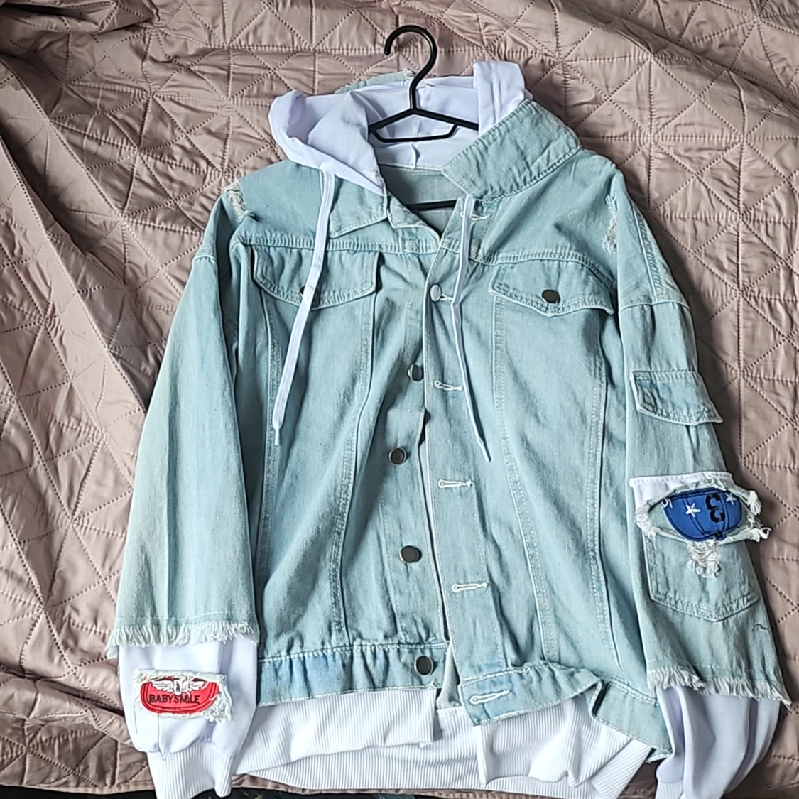 En praktiskt taget helt oanvänd (bara tagit på när jag först fick den) jeansjacka med mha tryck på baksidan. Beställt i M men är lite för liten för det så därav skriver in den som S Pris kan diskutetas