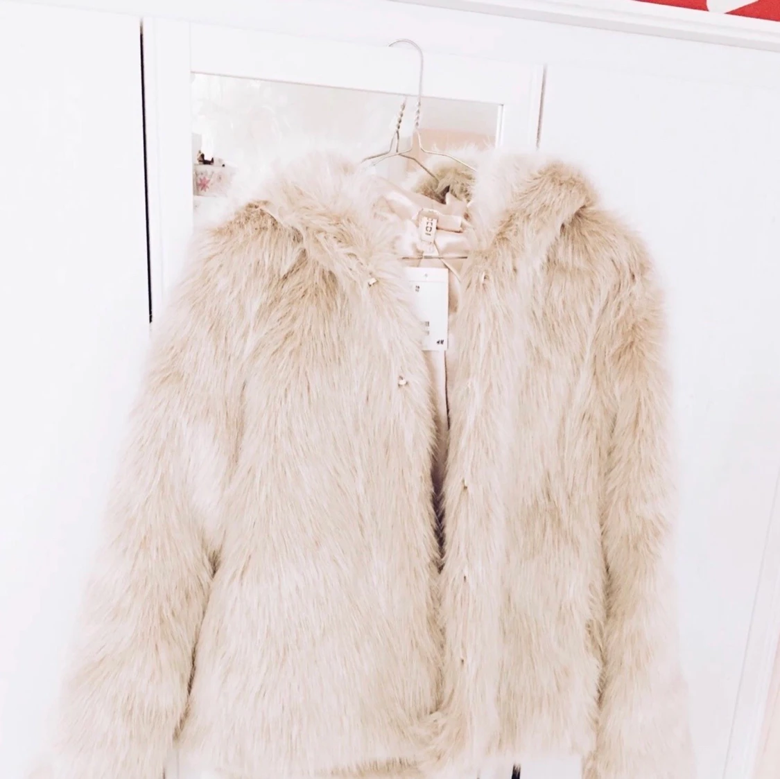 En beige pälsjacka med luva, storlek 34. Superfin 🥰 +frakt 63