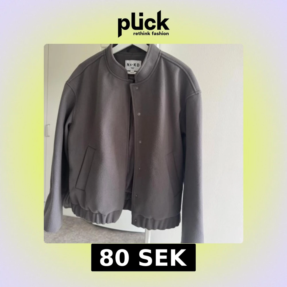 Säljer en stilren grå bomberjacka från NA-KD med rund krage och tryckknappar framtill. Oversized passform🌸