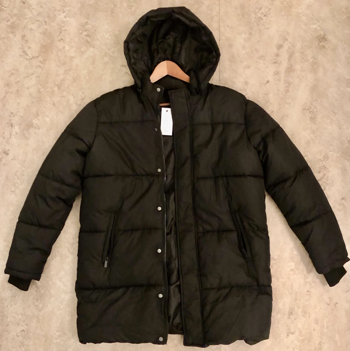 Selling a brand new Black puffer jacket since it did not fit me. Original price: 759 kr Size S: 89-94 cm - Fixed hood - High collar - Zip and press-stud buttons - Side pockets + one pocket inside the jacket - Regular fit