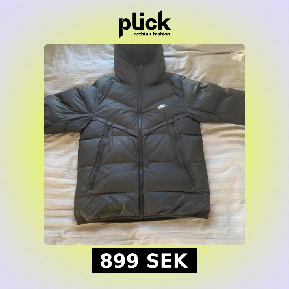 Säljer en svart pufferjacka från Nike med dragkedja och huva. Jackan har en klassisk design med Nike-logga på bröstet och är perfekt för kyligare dagar. Köptes på stadium med orginalpris 2000kr. Pruta gärna vid intresse av jackan! Sänker nästan alltid 😁
