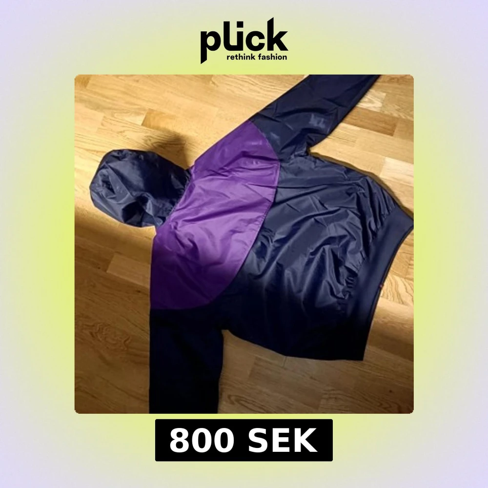 Nike vindjacka i lila och mörkblå med huva och dragkedja framtill. Jackan har använts max 3 ggr utomhus så den e så gott som ny storlek S men passar M också då min pojkvän är 180 och väger 77 ca .
