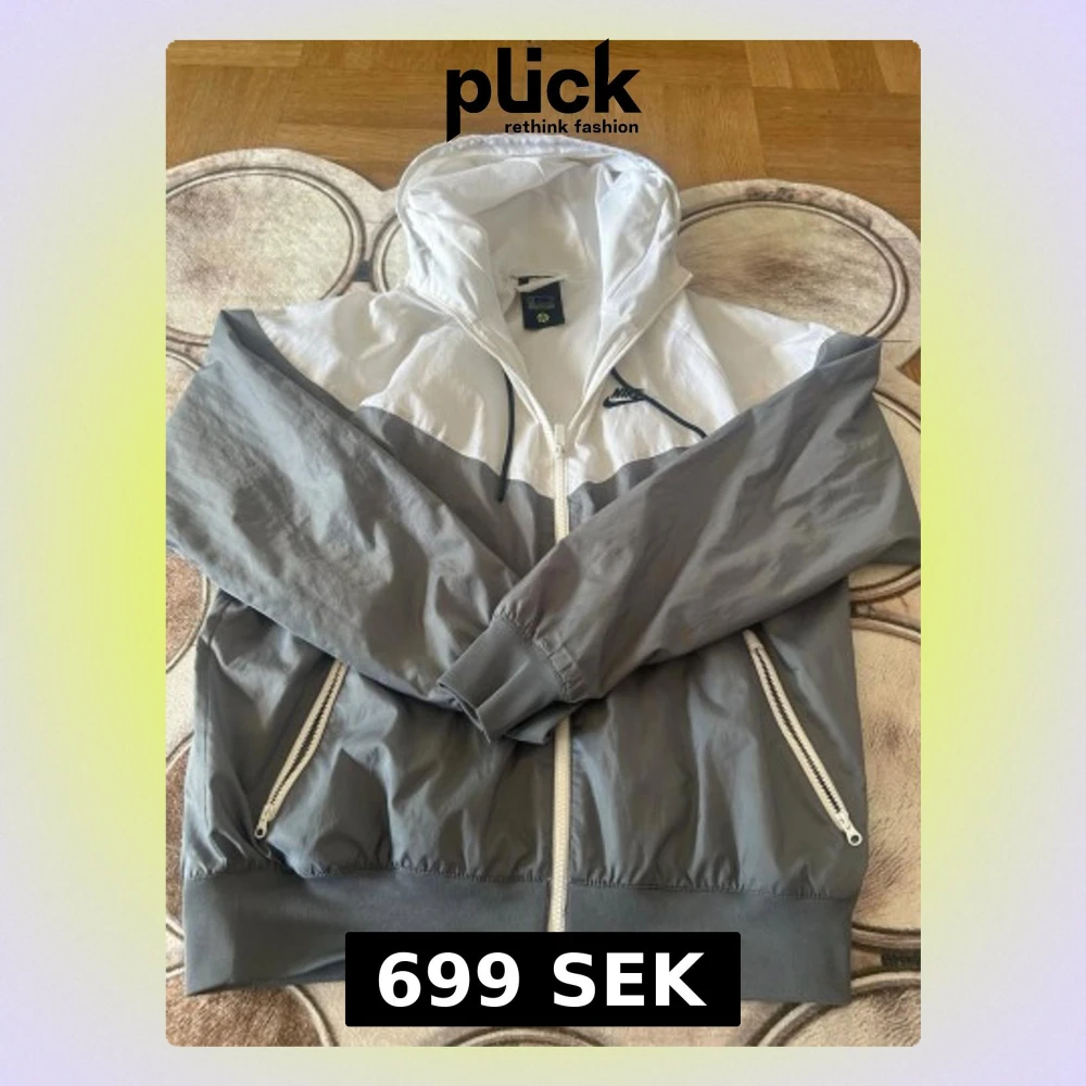 Nike Windrunner vindjacka i grått och vitt med huva och hel dragkedja. Jackan har två snedställda fickor med dragkedja, ribbade muddar och meshfoder. Klassisk Nike-logga på bröstet och sportig look. Perfekt för dig som gillar streetwear och snygg design.